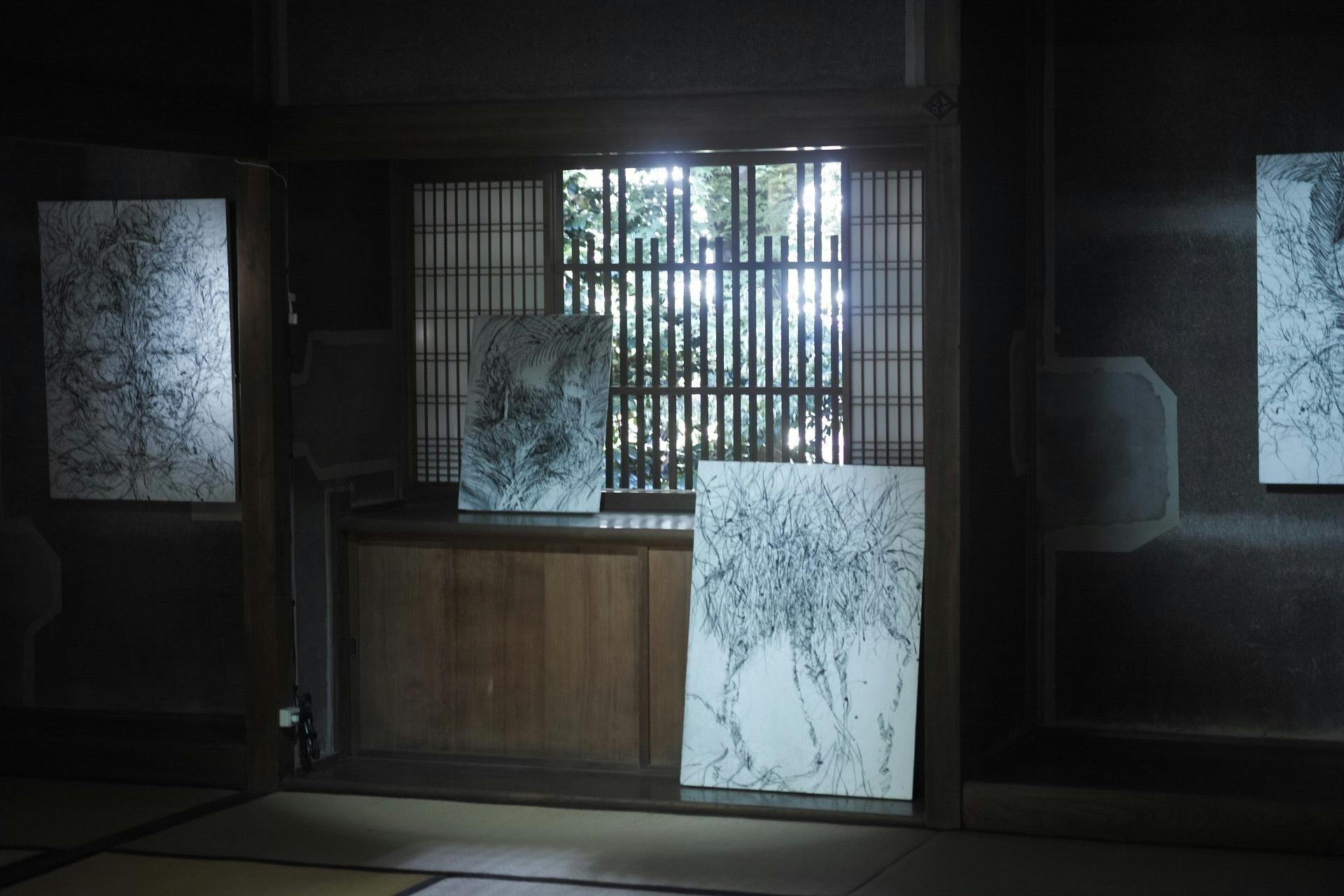 メイン会場となる書院は時間帯や天候によって全く違う表情になり、作品も様々な見え方、感じ方となります。この場所、季節、そして作品たちによって一期一会の体験をしていただける空間になりました。