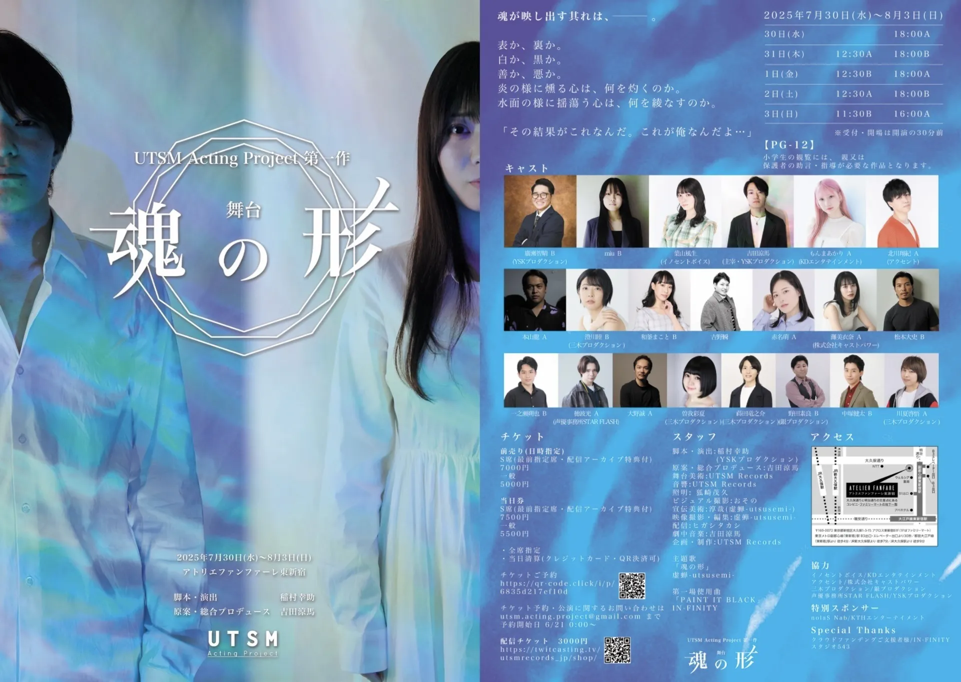 今回私自身が代表を務め虚蝉-utsusemi-の自主レーベルでもあるUTSM Recordsプロデュースの下、演劇・楽曲双方から物語を紡ぎ出す「UTSM Acting Project」を発足し、第一弾作品「魂の形」の公演を発表致しました。