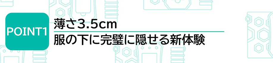従来型より遥かに薄いため、服も選ばず、利用時に膨らみが見えないほど体に合っています。