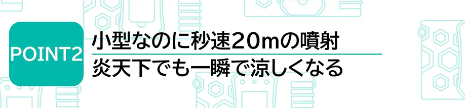 ●小型なのに秒速20mの噴射で、炎天下でも一瞬で涼しくなる