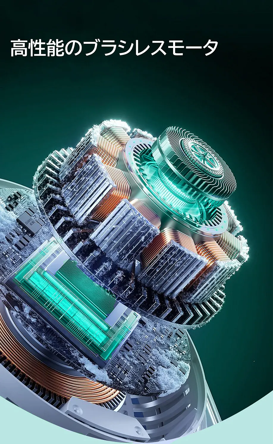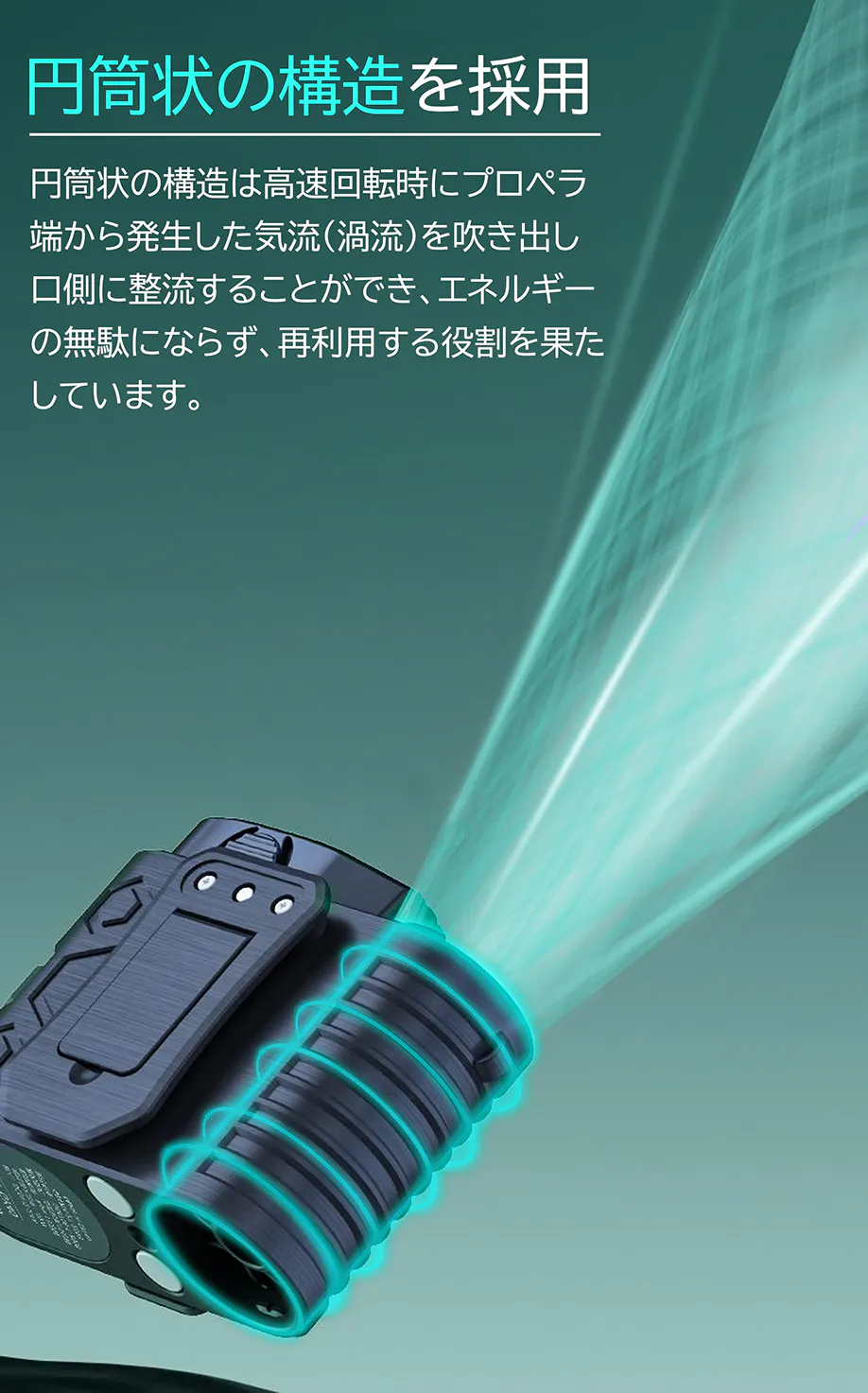 「WalkFan ultra」は高性能のブラシレスモータと円筒状の構造を採用し、普通型より遥かに強い性能を実現できました。