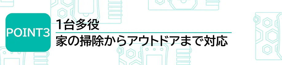 ●1台6役、クリーナー、エアポンプ、空気入れ、扇風機、エアダスター、ライト