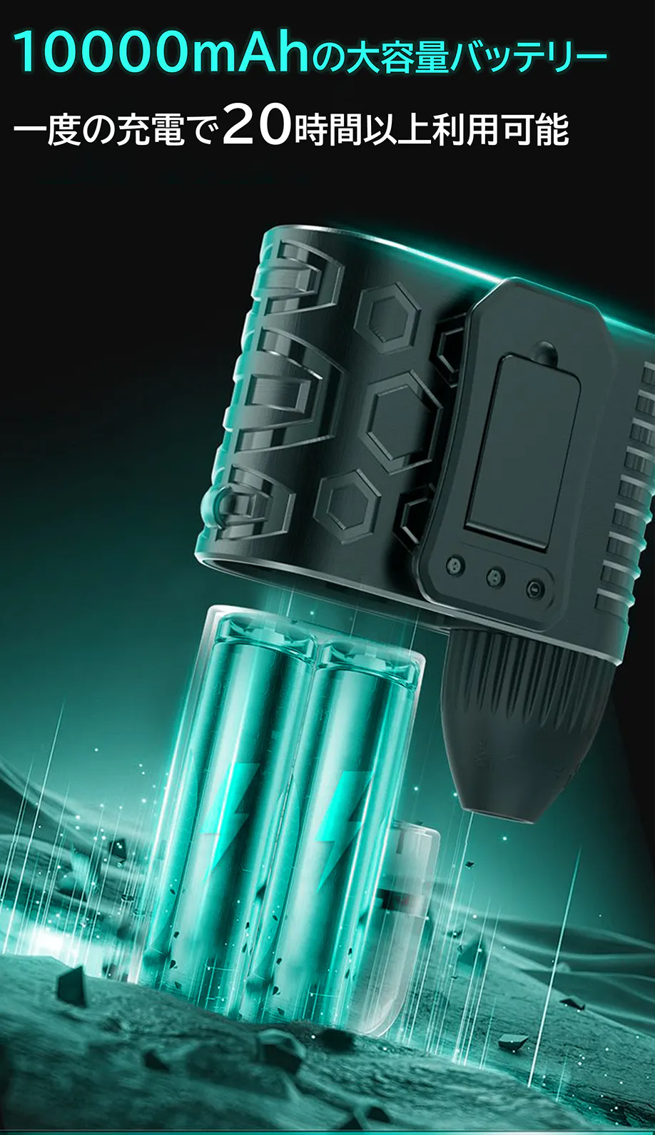 「WalkFan ultra」には10000mAhの大容量バッテリーが内蔵され、一度の充電で20時間以上利用可能。