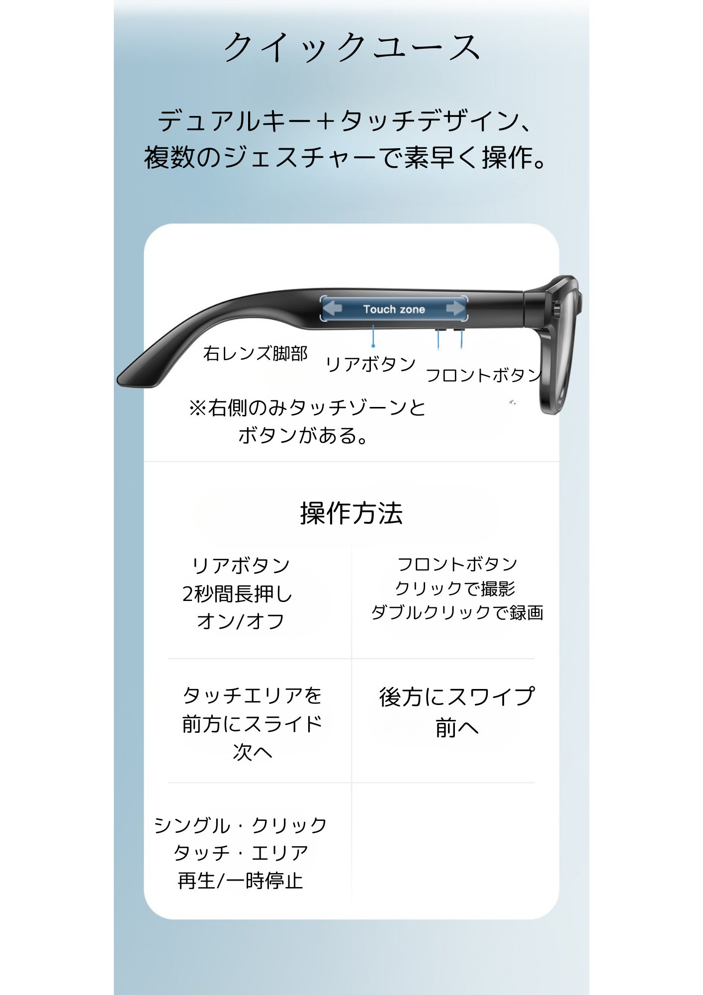 この革新的なスマートグラスは、最先端のテクノロジーを備えた多機能デバイスとして、日常生活をより便利で楽しいものにします。以下に、その主な機能と仕様を詳しく説明します。