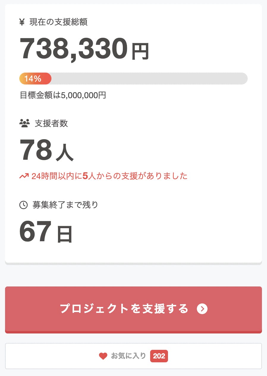 今回のプロジェクトを「お気に入り登録」してくださった方が