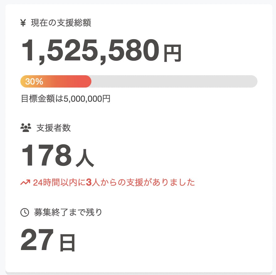 ご支援金額が150万円を超え、