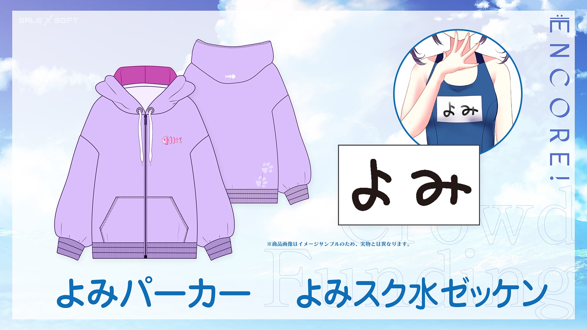 作中でよみが実際に着用している、パーカー,スク水ゼッケンをモチーフにしたデザインです。
