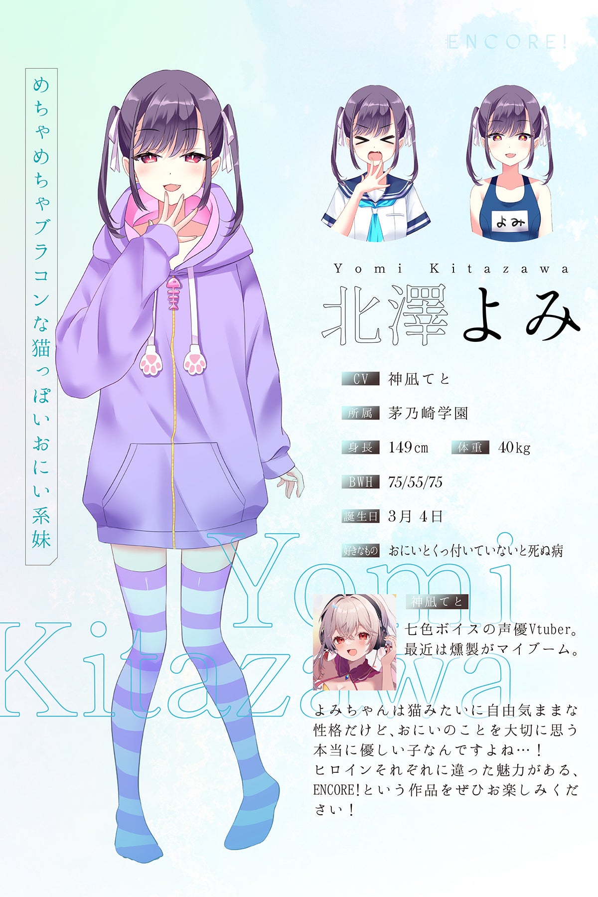 北澤よみのキャラクターソングを制作します! 歌唱はCVを務める神凪てとさんです!