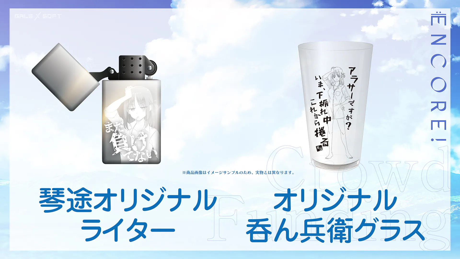 タペストリーや抱き枕カバー、テレカ風オリジナルカードなど、"美少女ゲームらしい”グッズはもちろんのこと、「オリジナルギターピック」や、「スク水ゼッケン」、「呑ん兵衛グラス」など、キャラクターに特化したリターンも準備しております!