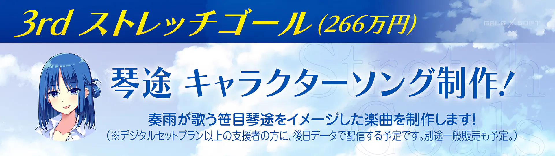 笹目琴途のキャラクターソングを制作します! 歌唱はCVを務める奏雨さんです! 達成することができれば2026年内のリリースを目途に制作を進めていく予定です。