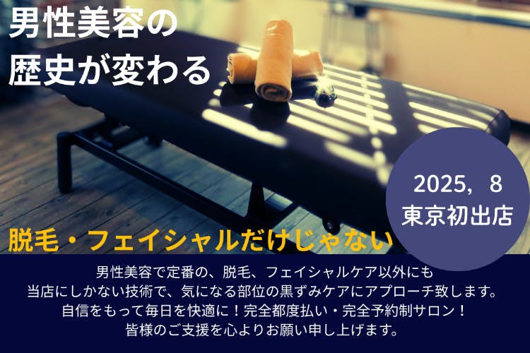 完全予約制のプライベートサロンをこの夏開業予定です。男性の美容関連の店舗が増える中、脱毛だけではなくスキンケアまでお一人お一人に合った施術を提供いたします。