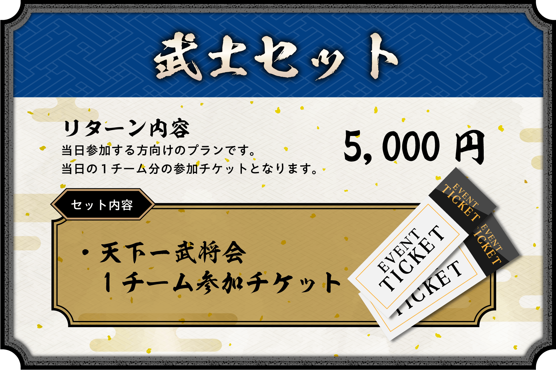 まずは、天下一武将会に参加するチケットとなっております。当日参加するための片道切符でございまする。