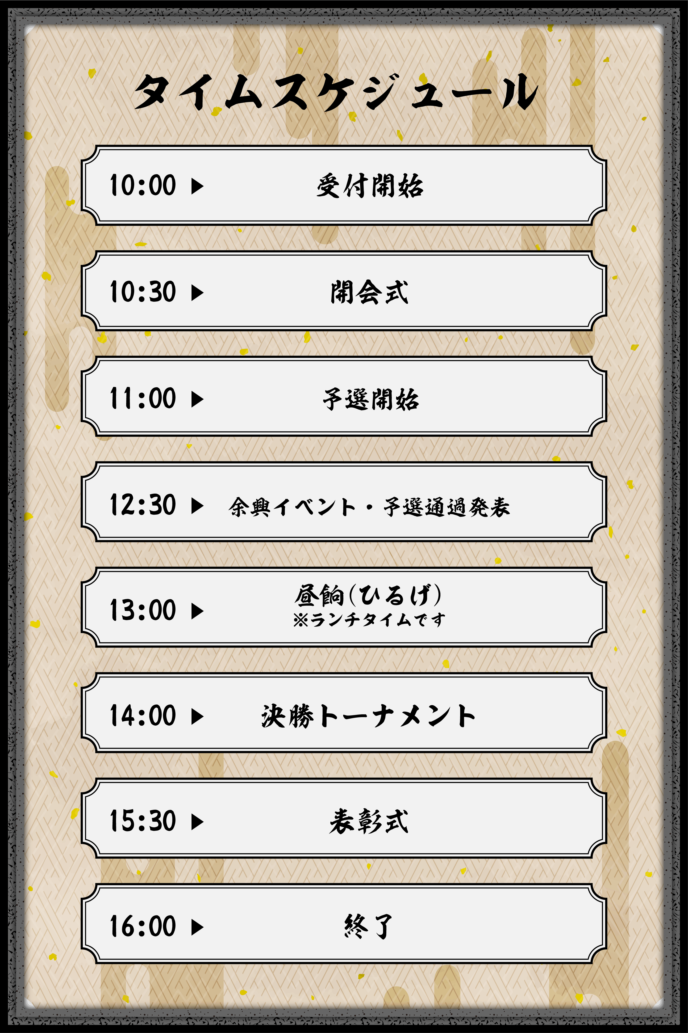 普段は親子向けで実施していることも多いですが、今回は最強の侍を決める為、安全面を考慮しまして中学生以上の侍を対象とさせていただきたいと思いまする。