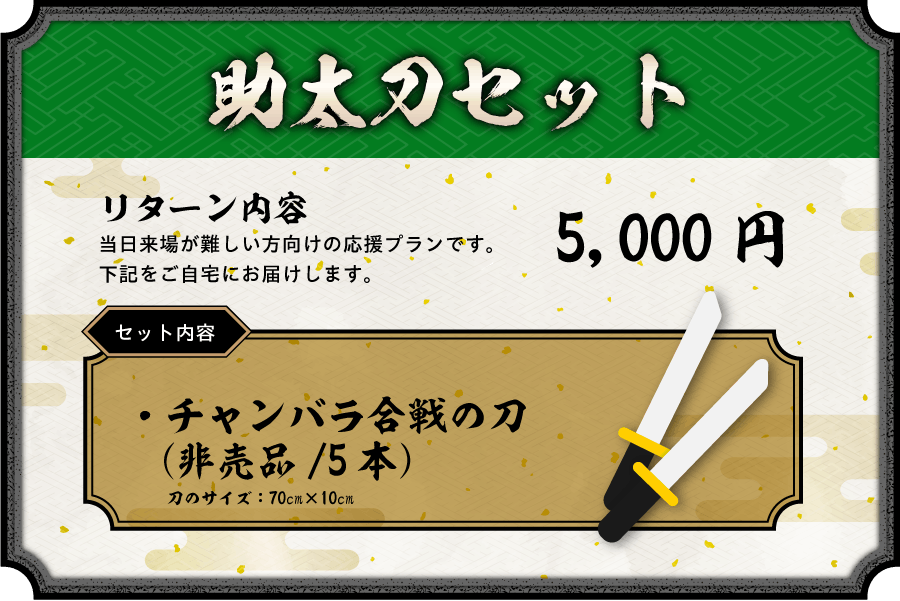 そんなお侍の為に、非売品の刀を5本お送りさせていただく助太刀セットとなっておりますぞ!