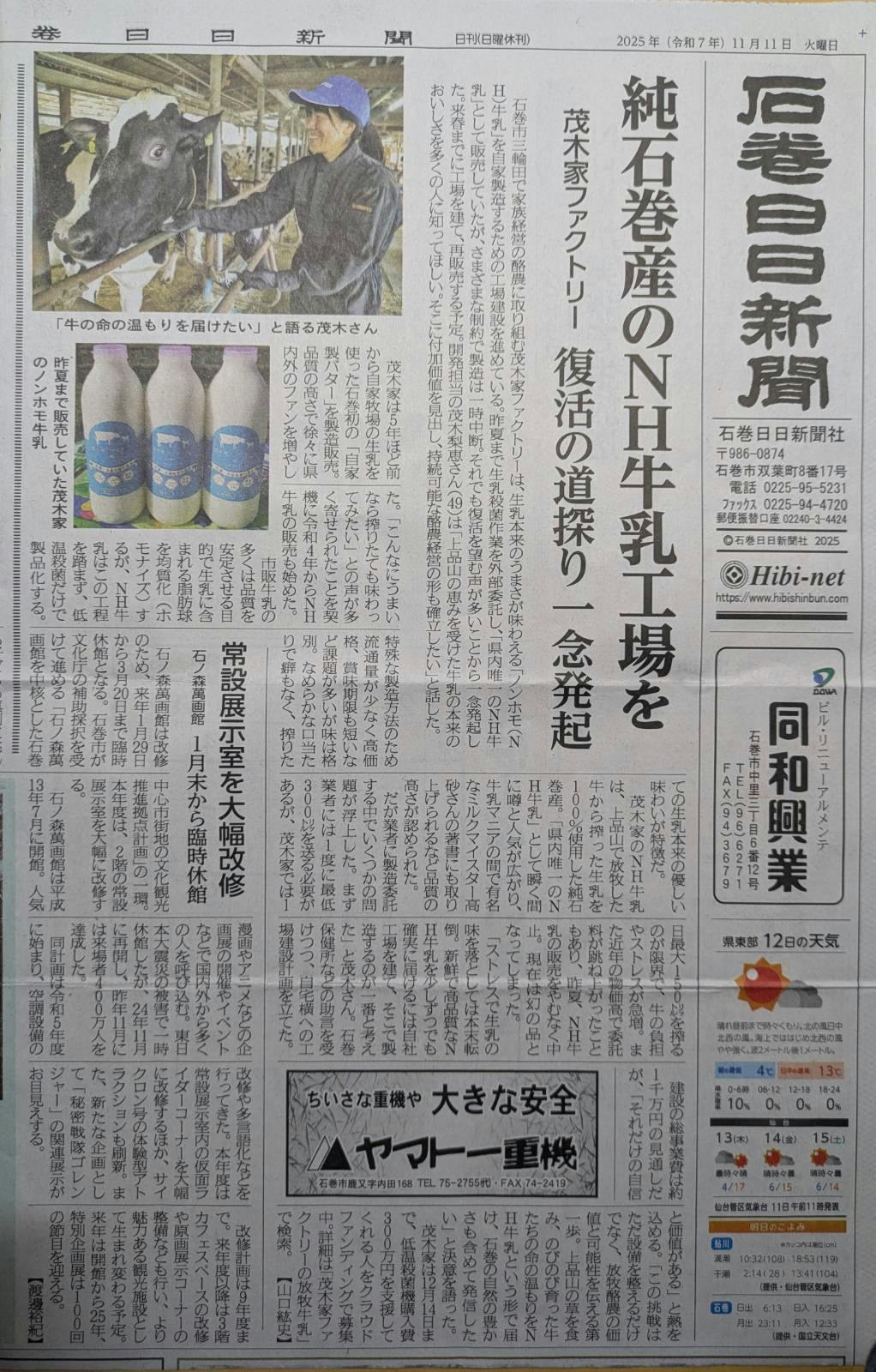 2025/11/11石巻日日新聞 にてご紹介いただきました!!