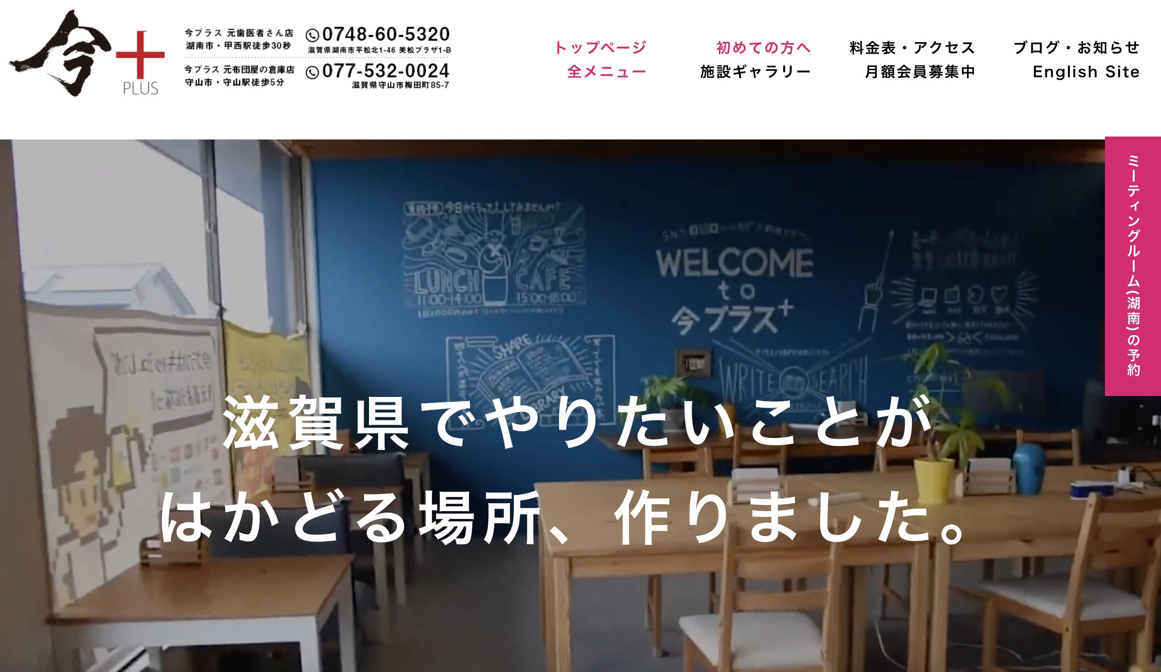 現在、私たちは滋賀県でコワーキングスペース「今プラス」を2店舗運営しています。