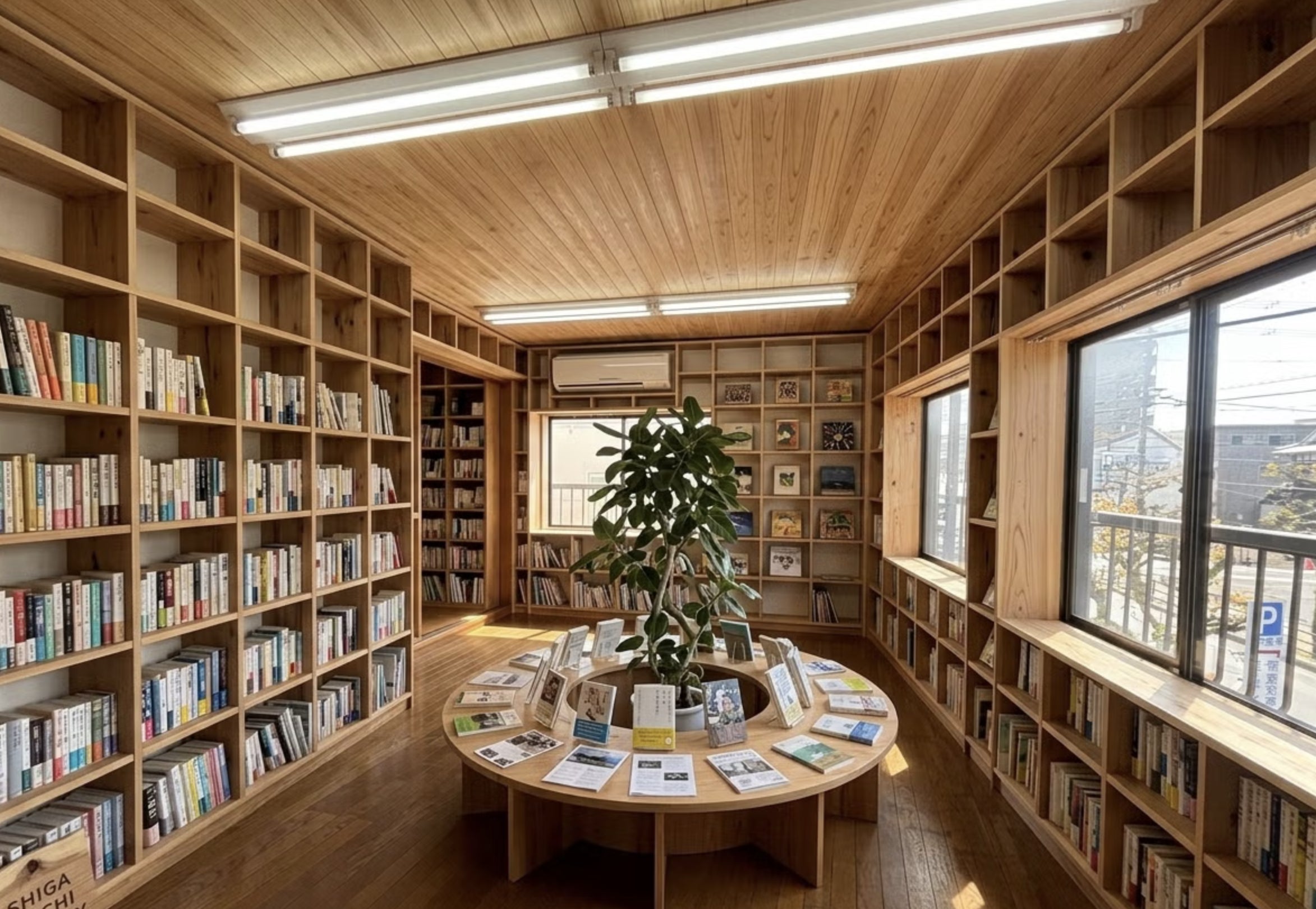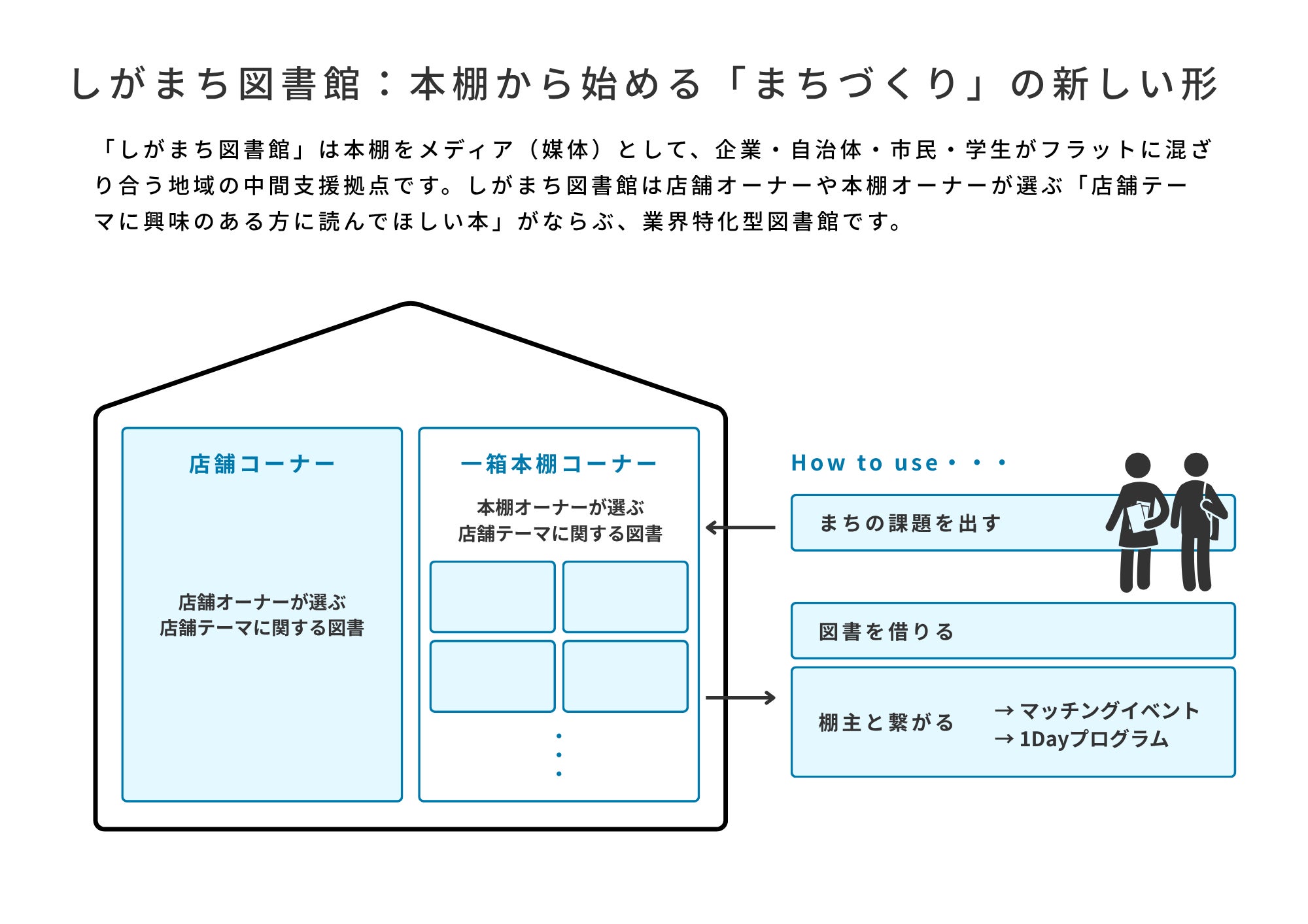 「しがまち図書館」は本棚に並ぶ本を通じて