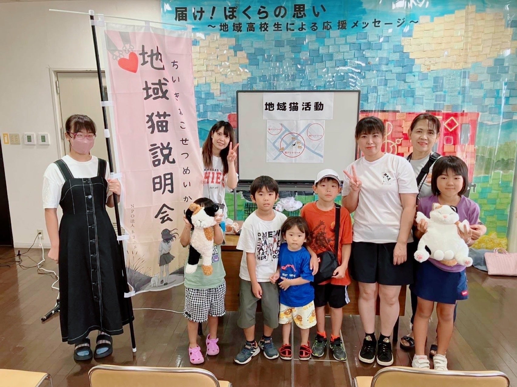 ねこねこ集会7月27日に地域猫説明会を行いました。私もこういうことを話すのも初めてでお聞き苦しいところばかりだったと思いますがお越しいただきありがとうございました。猫が好きな人は地域猫にも関心がある方が多いと思います。知っているようで知らないことも多い、地域猫活動についての解釈。『地域猫』という言葉が生まれた本当の意味。地域猫活動は『猫のため』と思いがちですが、本来は野良猫による苦情を減らすこと、地域環境をよくするために始まりました。つまり私たち『人のため』です。昨今メディアで地域猫を取り上げられることも増え、『猫のため』が先走りしているような話もよく聞きます。地域猫と保護猫の違いもよくわからない方が多い私たちの地域では、まず『地域猫とはなんぞや?』から始まるのかなと思います。1人が『地域猫とはなんぞや?』を知って、それを誰かと共有すればその輪は広がっていきます。大人ばかりが取り組むことが多いですが、子供たちにもぜひ関わるきっかけづくりができたらいいなと思っています。今回参加いただいた方の中で、猫によるご近所トラブルで悩まれていた方が、きちんと管理したことによって解消したというお話しがありました。猫が嫌いな方には必ずきっかけがあります。車に傷をつける、糞尿をする、鳴き声がうるさいなど色々あります。地域には、猫が好きで助けてあげたいと思っている方ばかりではありません。説明会でもお話ししましたが、地域猫を広めるにあたって以下のような考え方があります。全ての地域がこのパターンに当てはまるわけではないですが、さまざまな考え方がるという一つの指標でもあります。猫がかわいそう、助けたいと思う気持ちが先行しすぎて、『猫嫌い=悪』という偏った考え方を強要してしまうと地域猫活動が進まない原因になる場合もあります。お互いの歩み寄りが大切ですがこれがなかなか難しい…逆に人がクリアできれば地域猫活動は大きく前進します。まずは地域猫という言葉が無関心層にも届くよう、地道にやっていくしかないです。次回のねこねこ集会は8月23日を予定しています!地域猫活動は手術すれば終わりではありません。きちんと管理することが一番大切。ということで、地域猫用のトイレはどんなのがいいのか?を考えてみたいと思います。次回も今回同様、猫グッズも販売いたします♪夏休みも終盤の8月23日、お時間ある方はぜひお越しください。最後まで応援をよろしくお願いいたします。