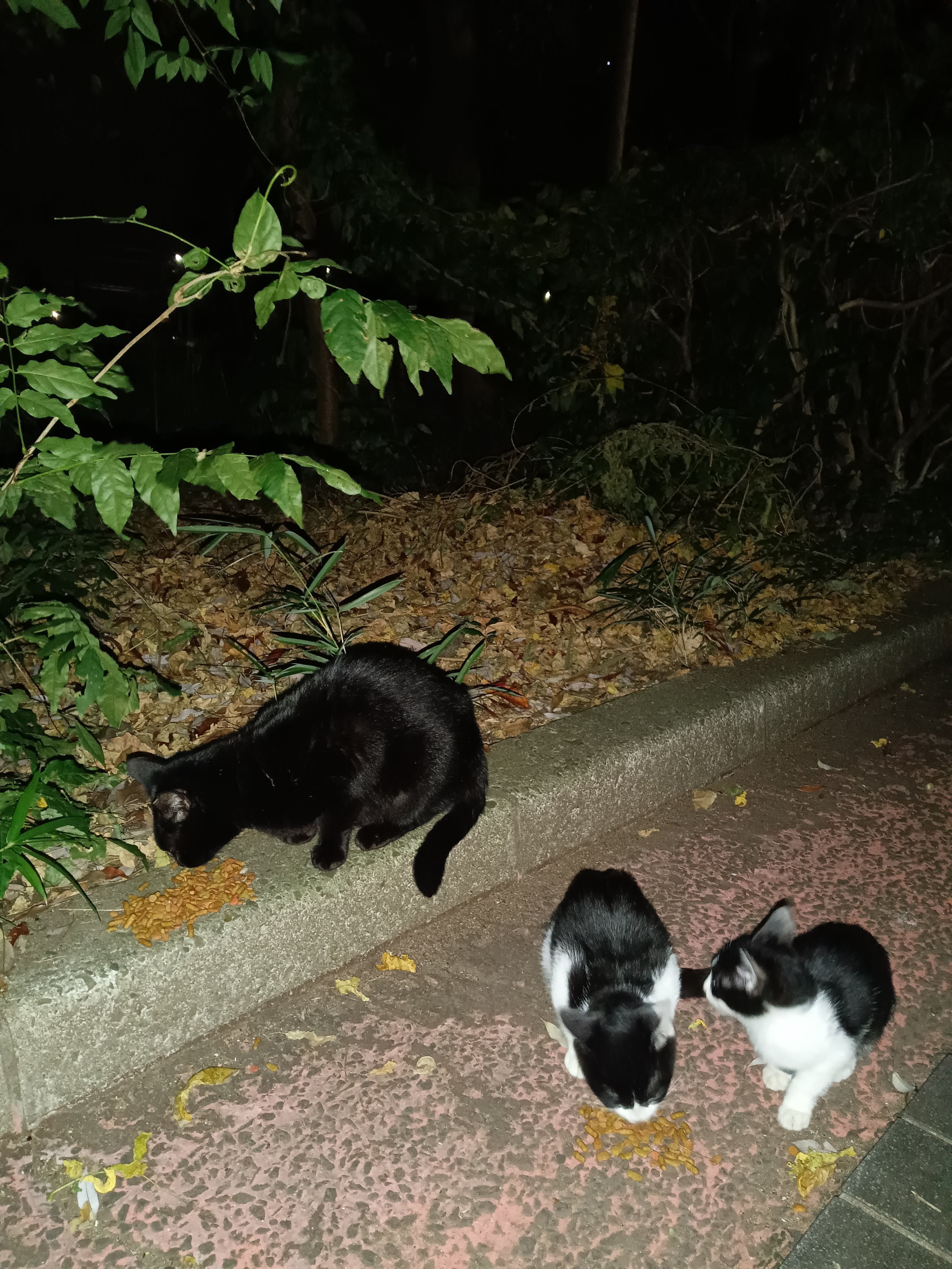 市営住宅の近くでは、何年か一度沢山の猫が捨てられていきます。避妊、去勢をしまして、リリースした野良猫達の餌やりを毎晩しにいってます