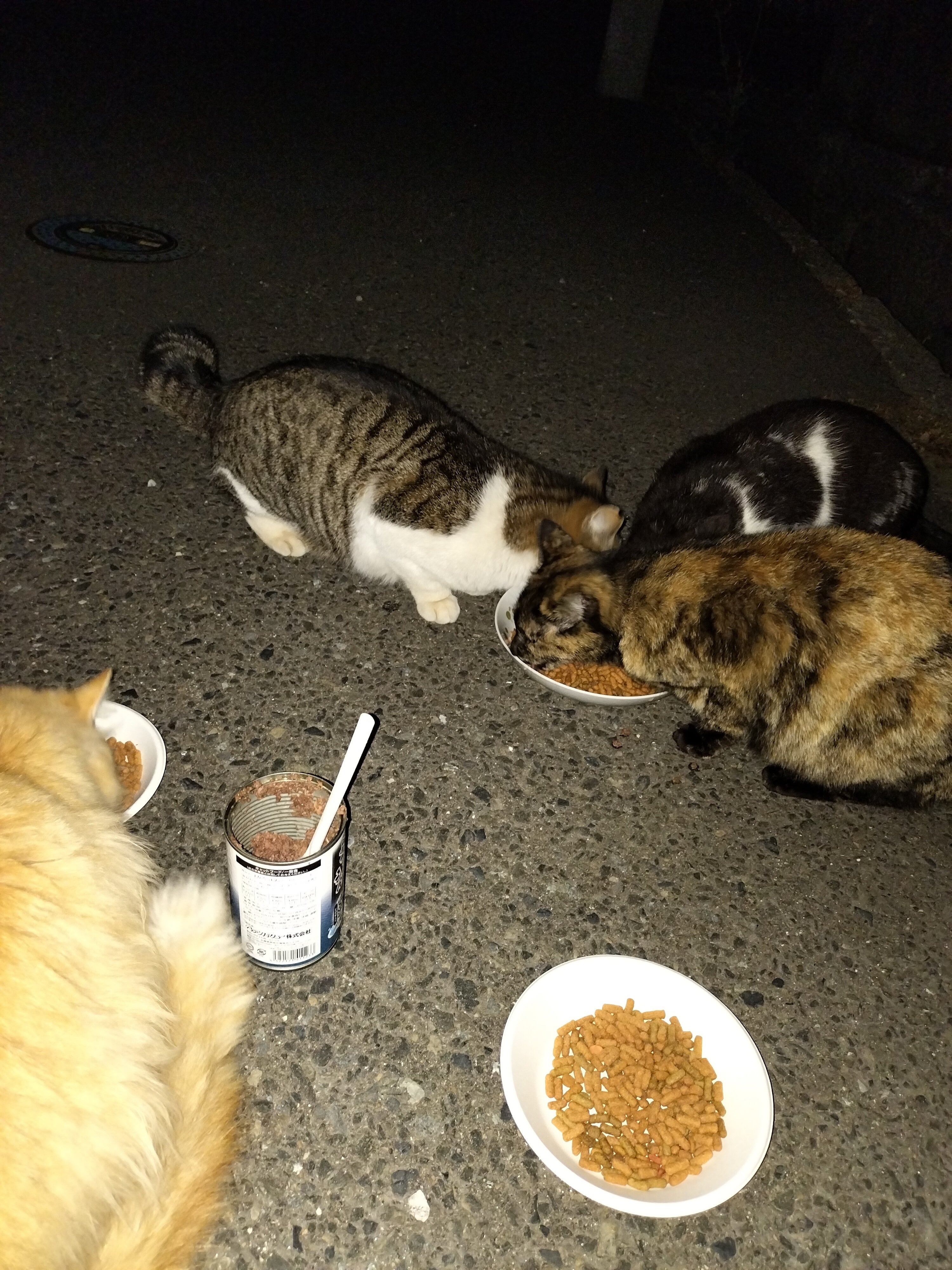 こちらは市営住宅の野良猫ちゃんです、みんなご飯を待ちわびています。