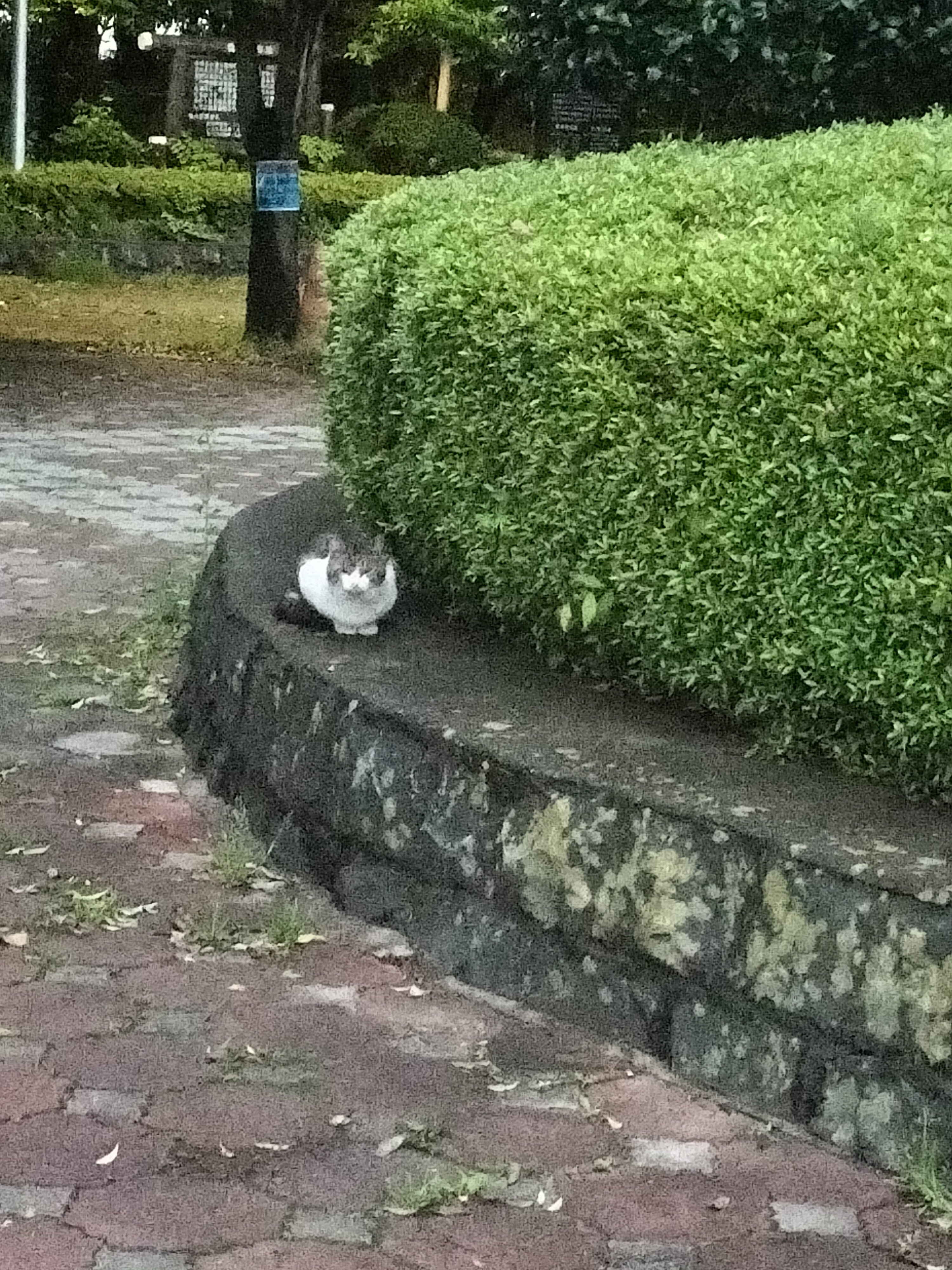 模様が公園のみき君(ご飯を食べているのがみき)とほとんど一緒なので、まぎらわしいです。お空もすっかり明るくなってしまいました。家の猫達も待っているので、慌てて帰りました。