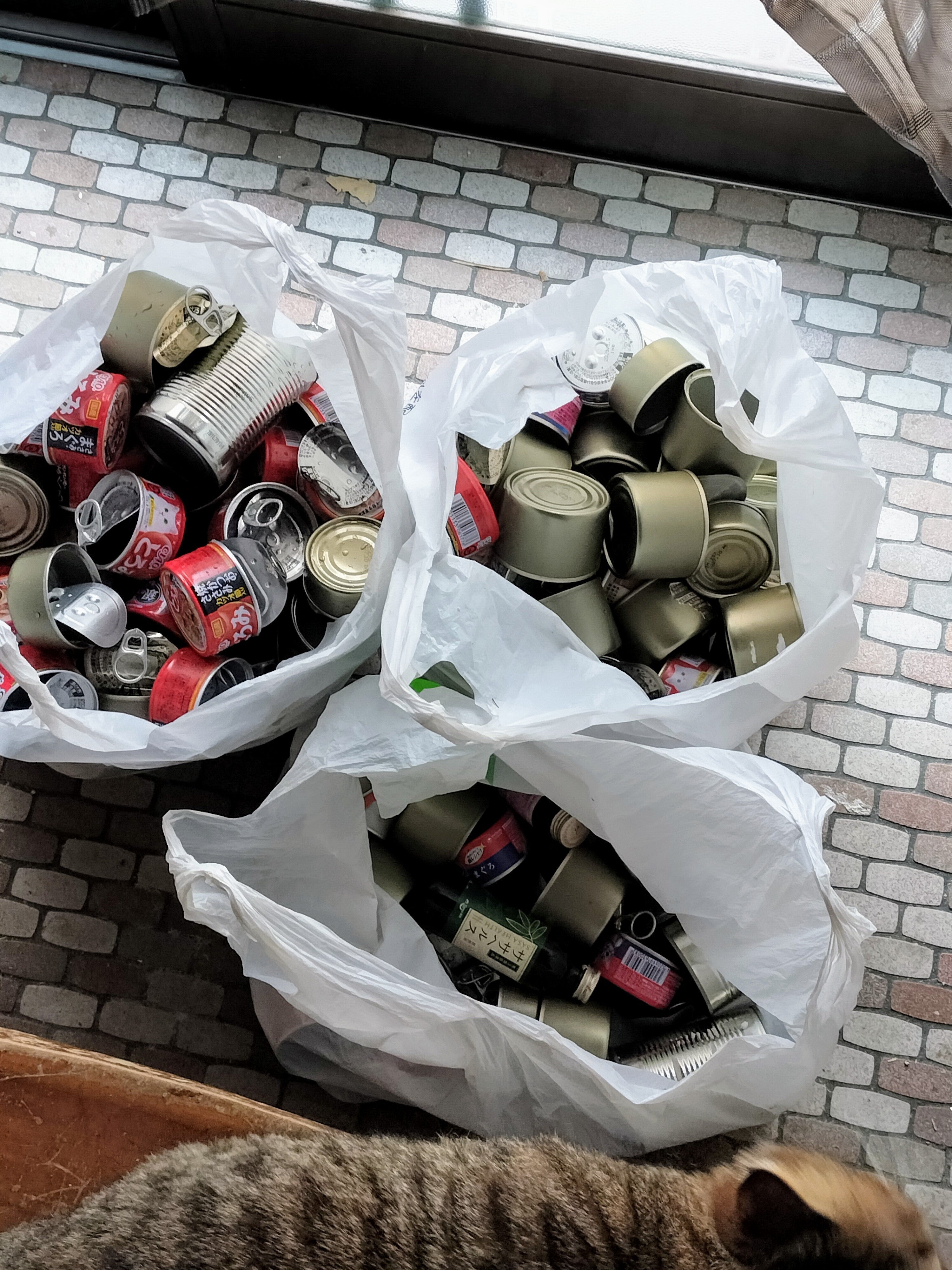 一回分の餌でこんなに猫缶がでます。1週間分の砂とゴミも大量にでますO_o もうとっくに破産している状態でした
