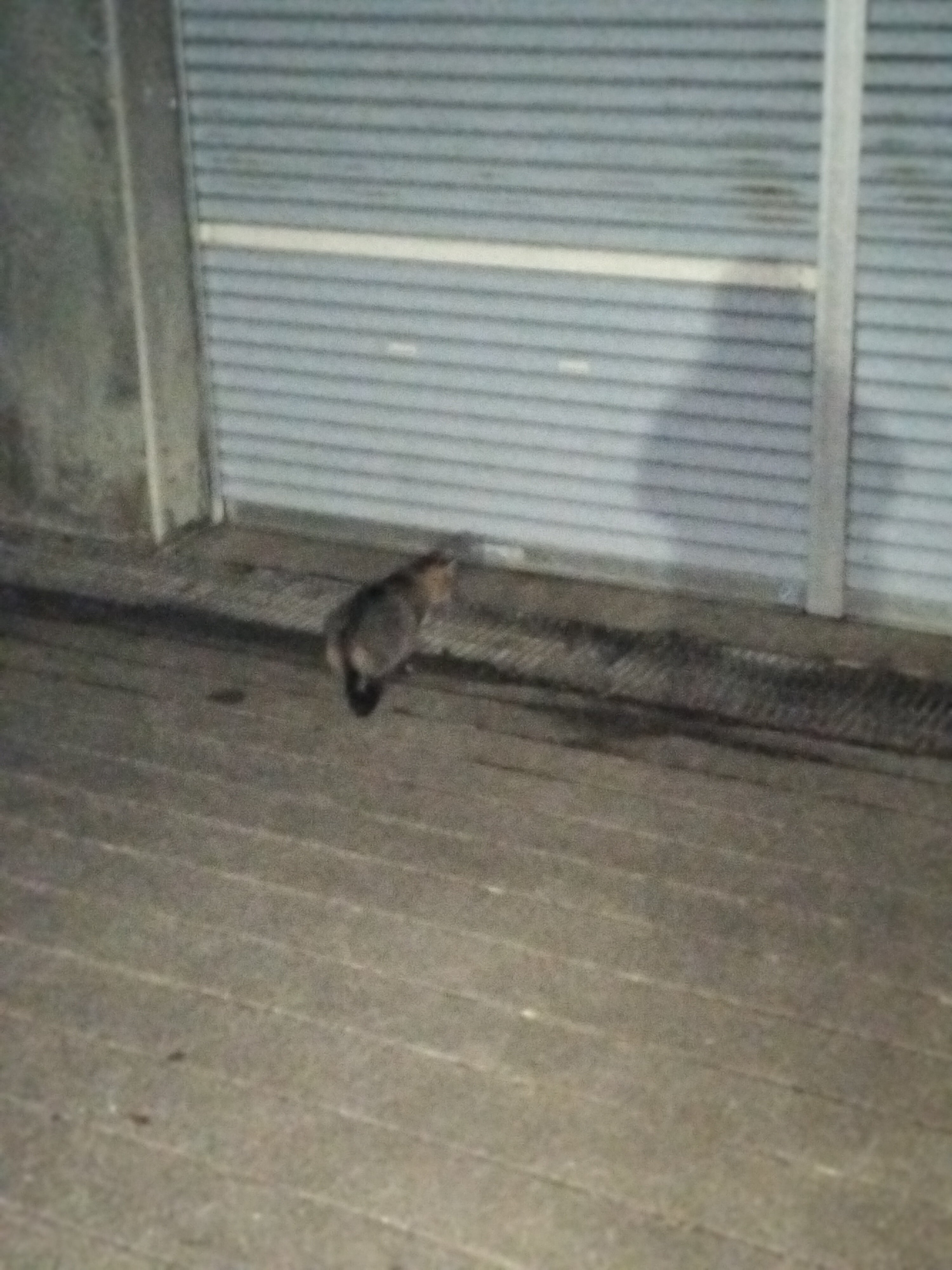 全然学習しないんだもん、この子は…前回もシャッターが固くて鍵も掛かっていたので、シャッターも隙間が少ししかなくて、シンディーを出せず、一晩倉庫の中に泊まってもらって、次の日に公園の事務所に電話をしましたら、現在使われてませんとなりました(TT) 公園には掃除するシルバー人材の方々がたまに来るだけの様でした。 その夜中に仕事を終えてから、公園に行きまして、力いっぱいに隙間を開けました、絶対に出してやるから〜という思いでした。 そしたら、シンディーが自力で抜け出して来ました。