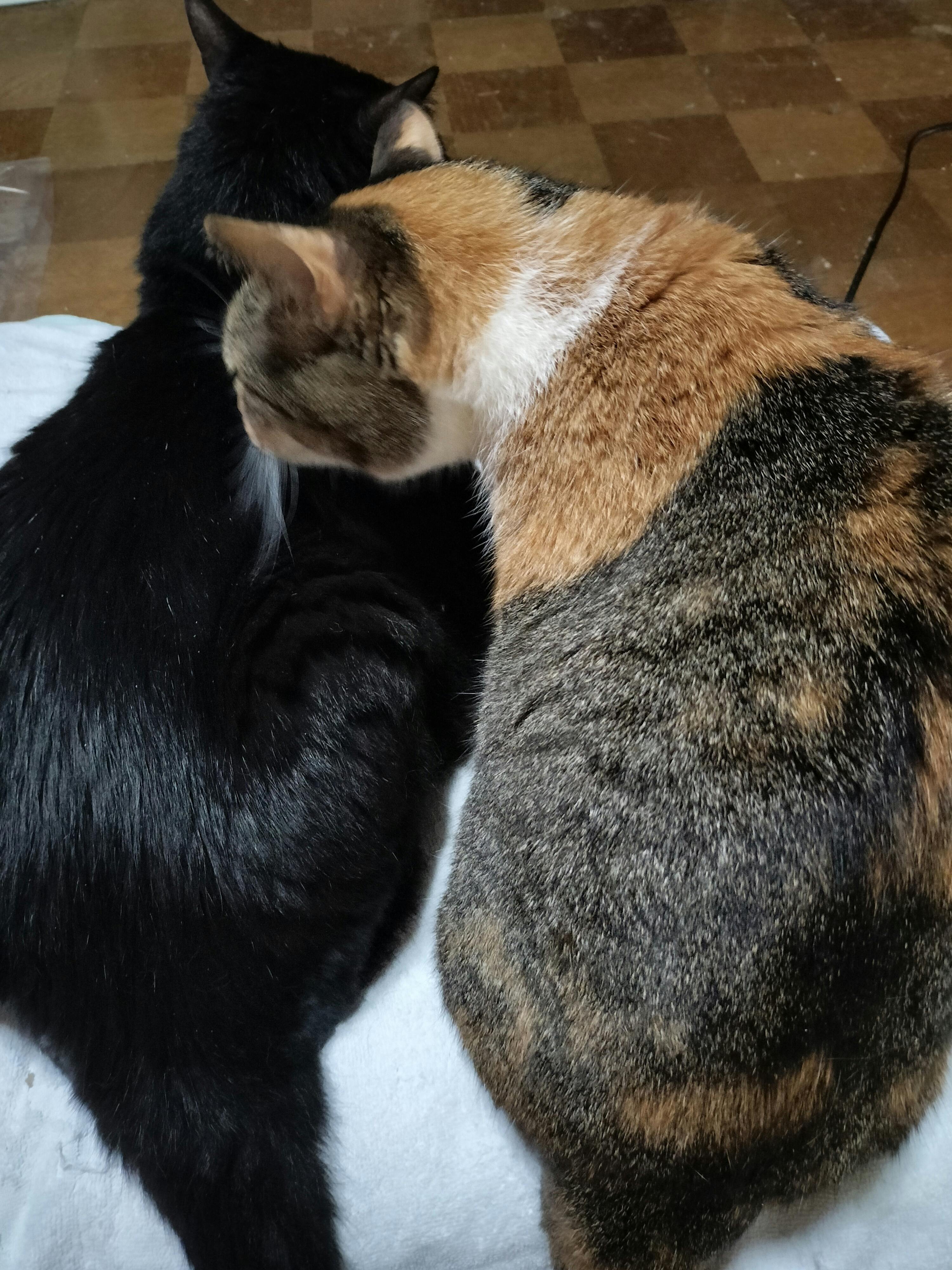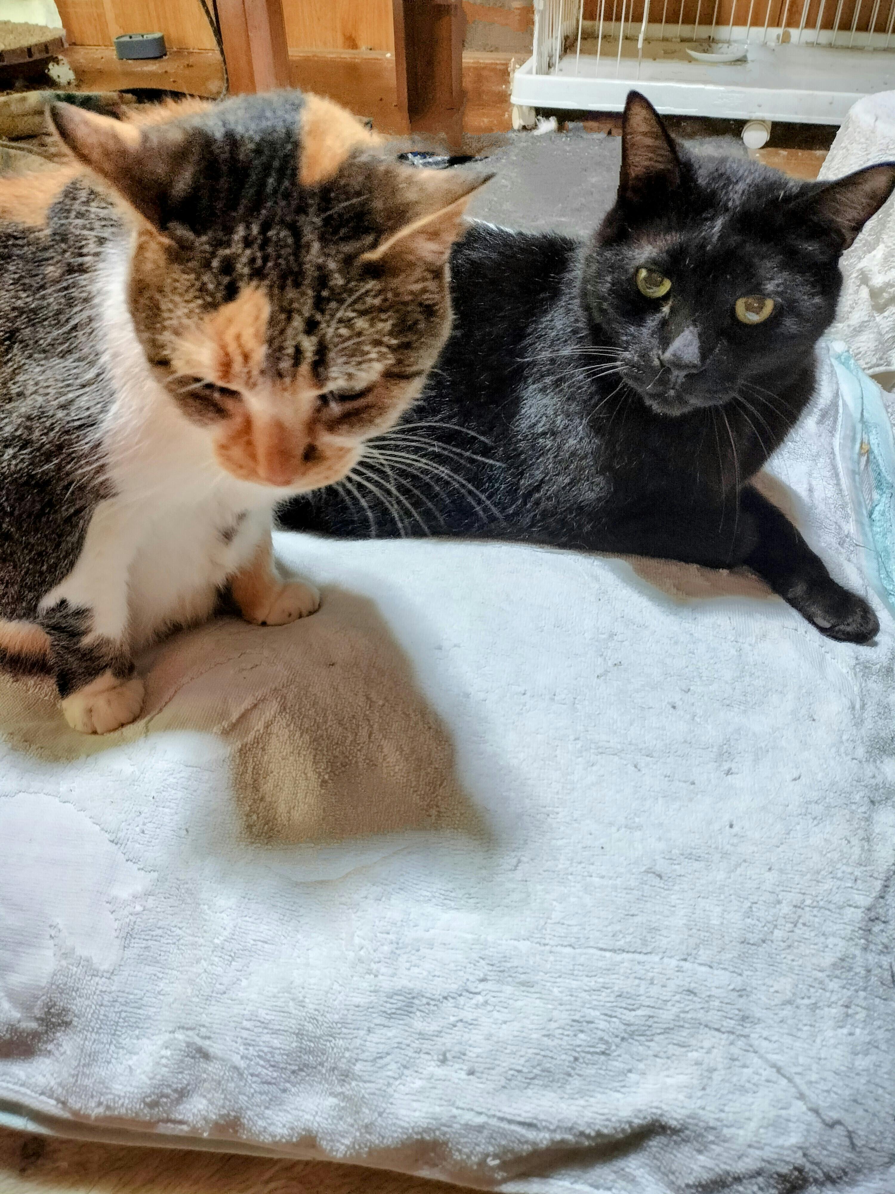 自分自身の毎月の薬代は2万5千円位です。家の保護猫のミミは背骨がくっついてしまいました。激しい痛みでまともに歩けないのです。いつも横になっています。ガクトは4本の足が変化してしまいまして、9キロもある体重を引きずりながらびこ引いています…共に13歳になりました、みんな今の活動地域で生まれた子達なのです。(上の写真がミミとガクトです。共に13歳です。今の活動している地域の子達です。保護した時は2匹共ガリガリでした。ガクトは激しい下痢でお尻が腫れ上がってしまい、外に飛び出してました)