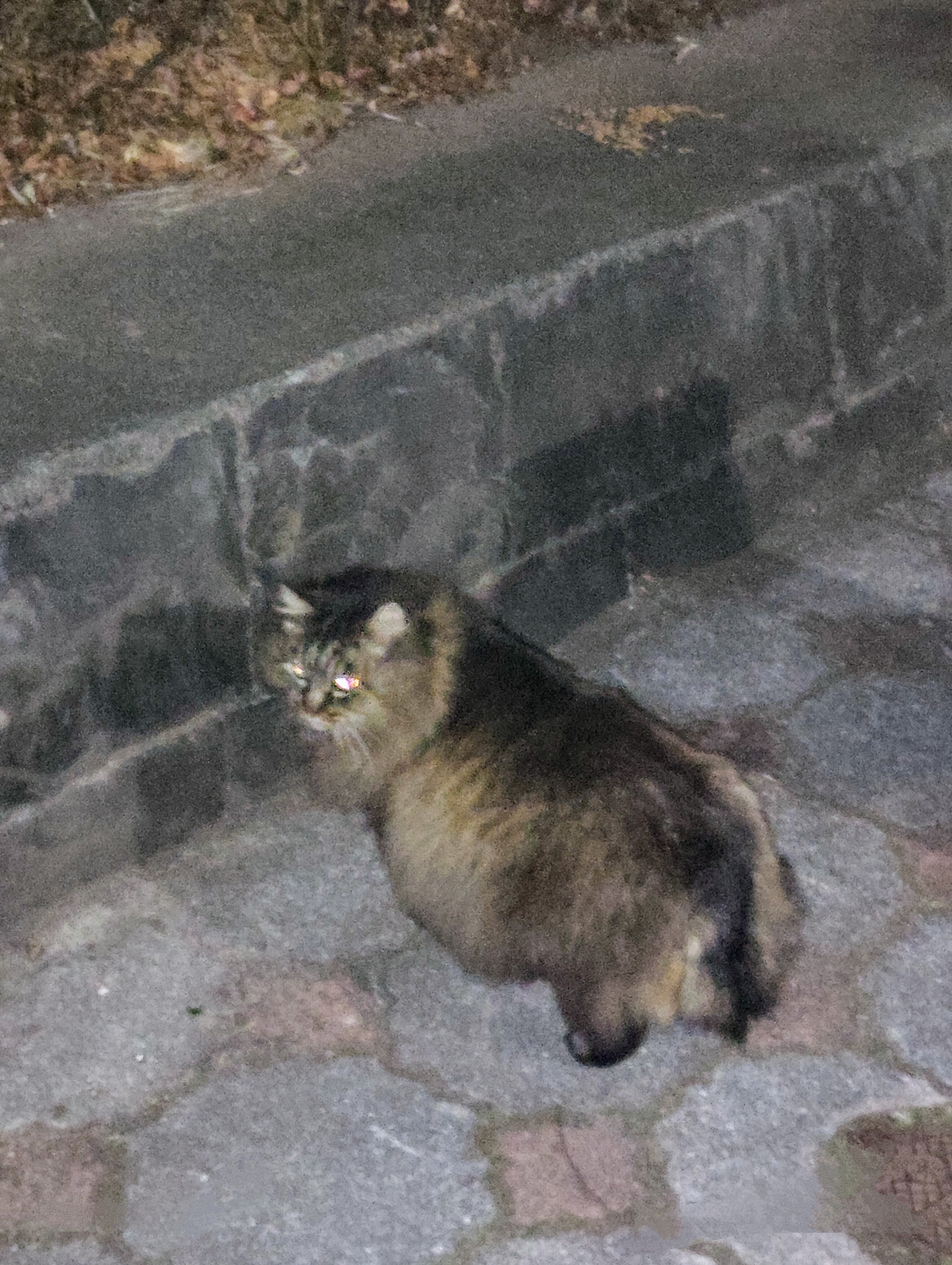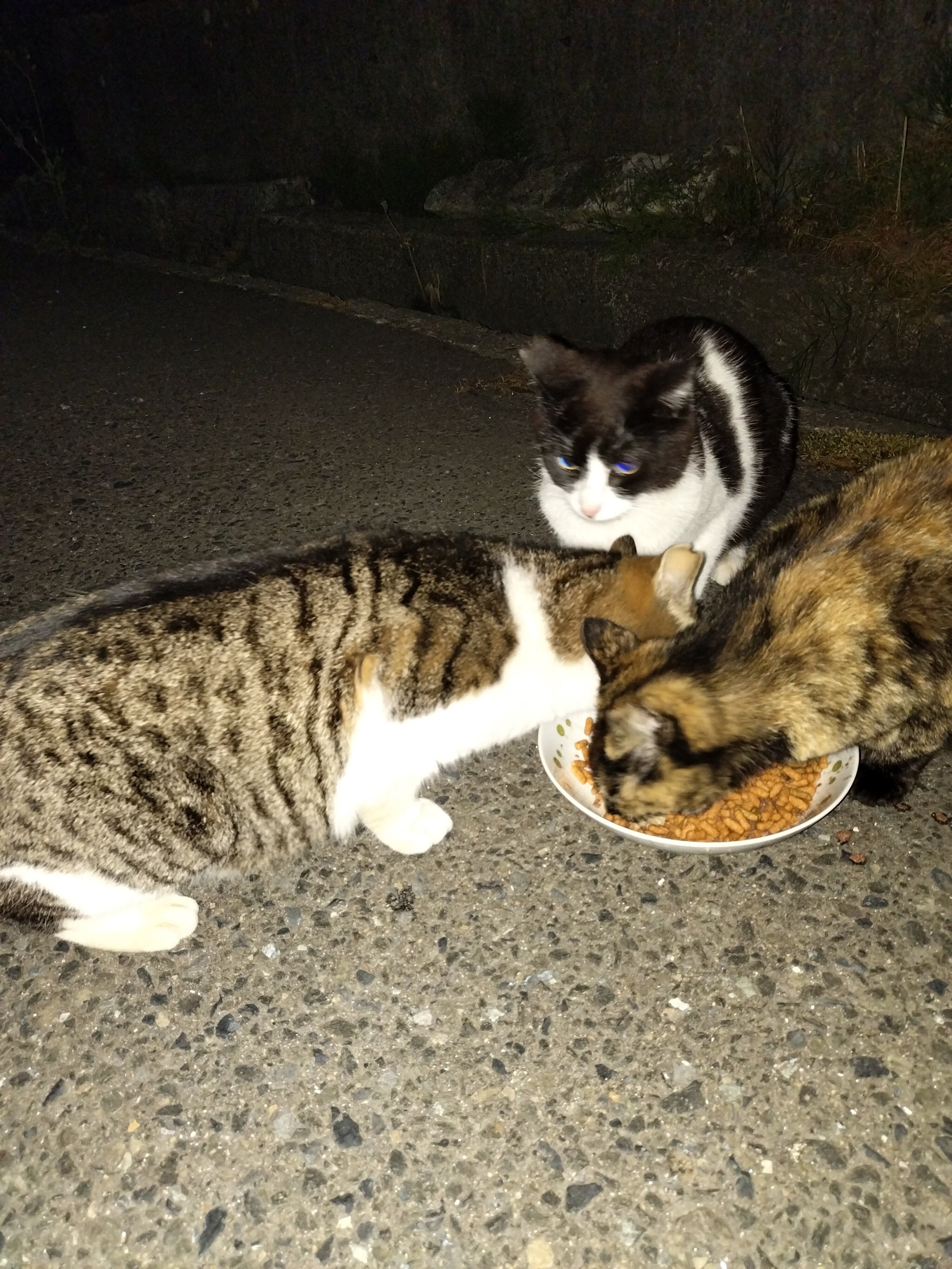 昨日は仕事も暇でしたので、夜の11時頃に仕事をやめまして、ミュウちゃんが出てきたかどうかを確認しに行きました。途中でも、もしかしたら、また出てきていないのではないかと言う予感がしていました。予感が命中してしまいました。石油会社の中の3匹は居ましたが、ミュウの姿は何処にもなかったのです(╥﹏╥)