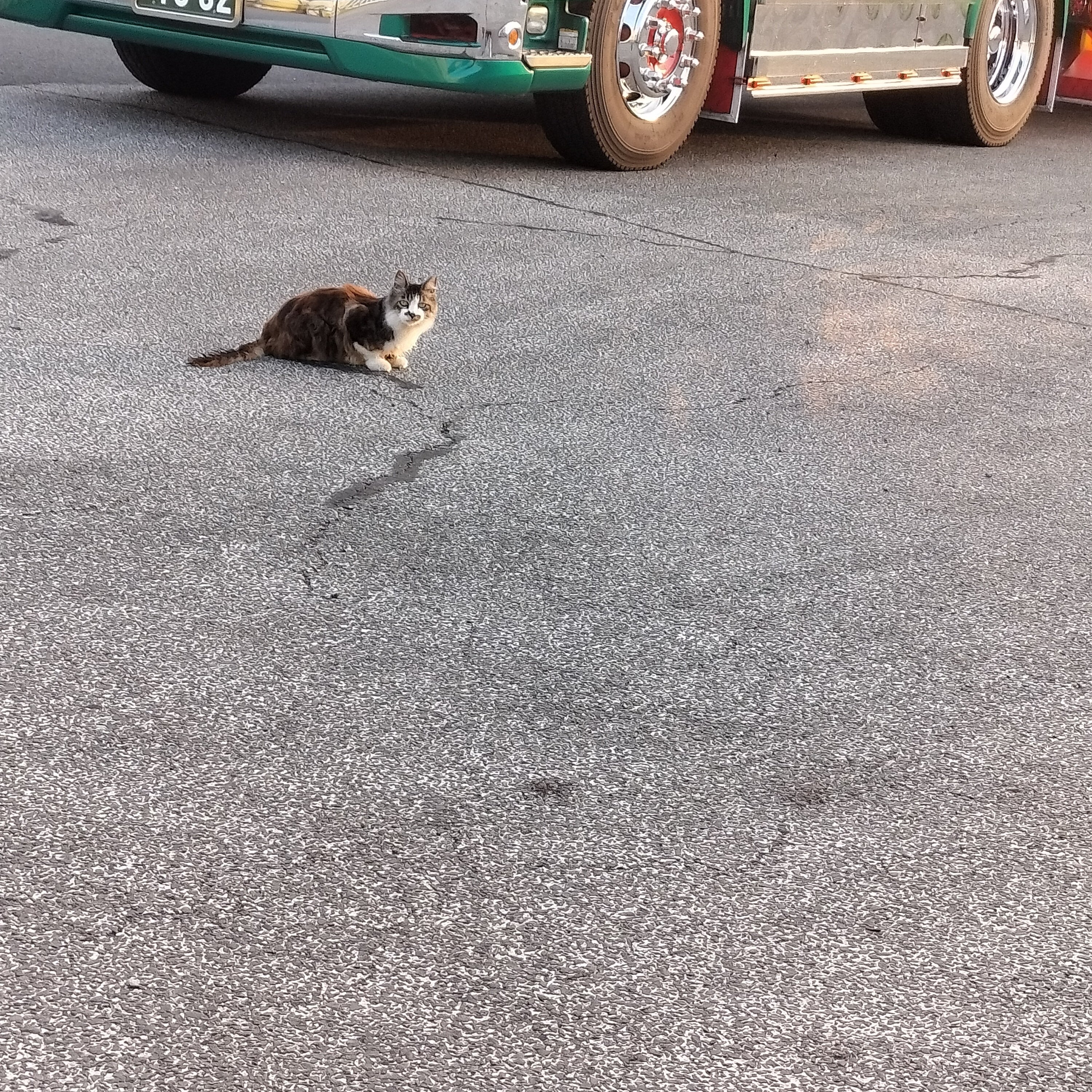 仕事を夜中の2時までしてましたのて、餌やりも朝方になってしまいました。見たことのない猫が居ましたので、ご飯をあげたら、ボスたま君がどこからかやって来ては横取りしました⊙﹏⊙