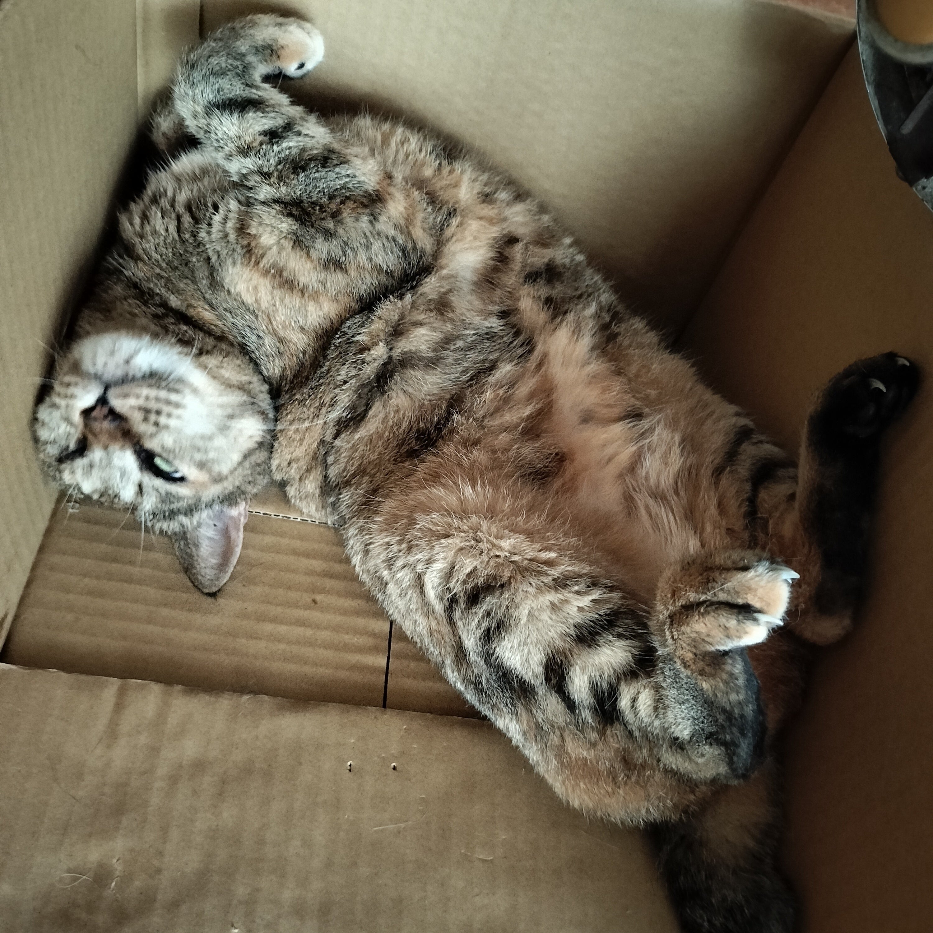 チャッピーも暑さにやられて、段ボールの中に逃げて行きました◉‿◉