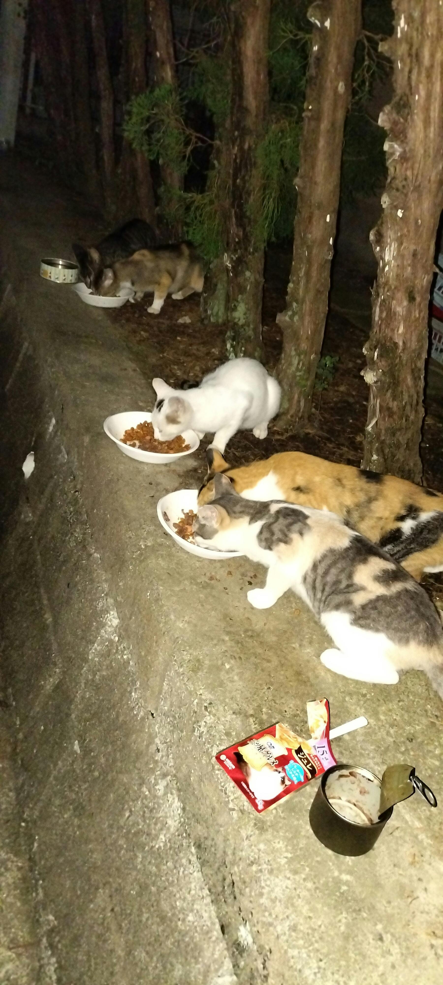 野良猫ちゃん達も2日間の豪雨で、どしゃ降りの中何匹かはでてきましたが、びっしょ濡れでした…2日目は夜中の2時まで仕事していましたが、突然の暴風雨で、仕事になりませんので、やめました。猫達の所に向かいましたが、公園の近くの道路が冠水してしまいました〜 どしゃ降りの中で、猫達も居ないかと思いまして、引き返しました…