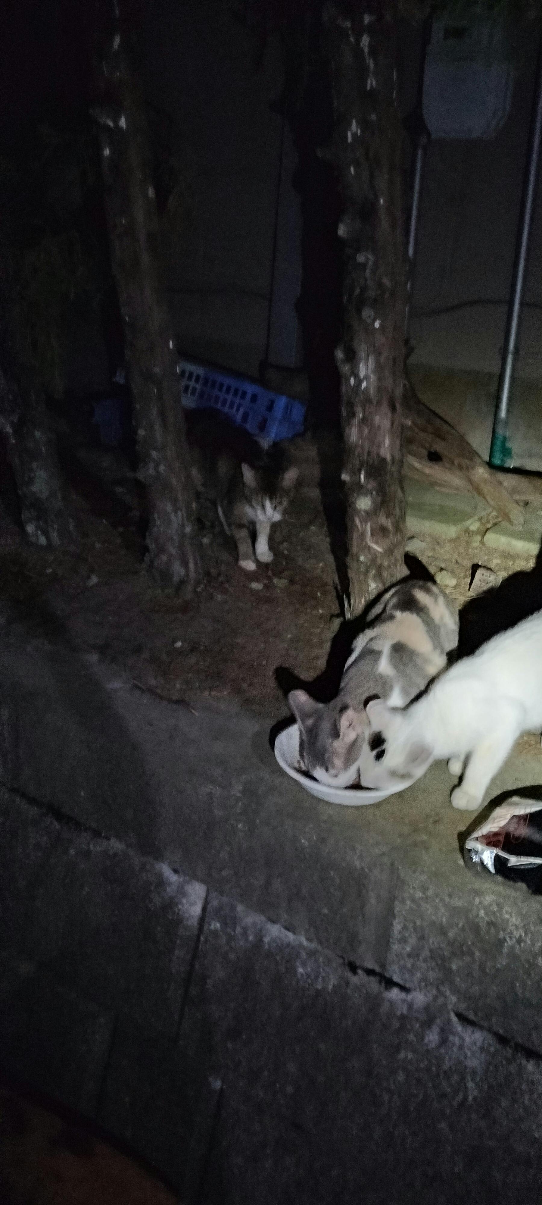 支援者様方お久しぶりです。いつもありがとうございます。今日の朝方に家の近くの5匹の猫家族にご飯をあげに行きましたら、待ちわびていました。