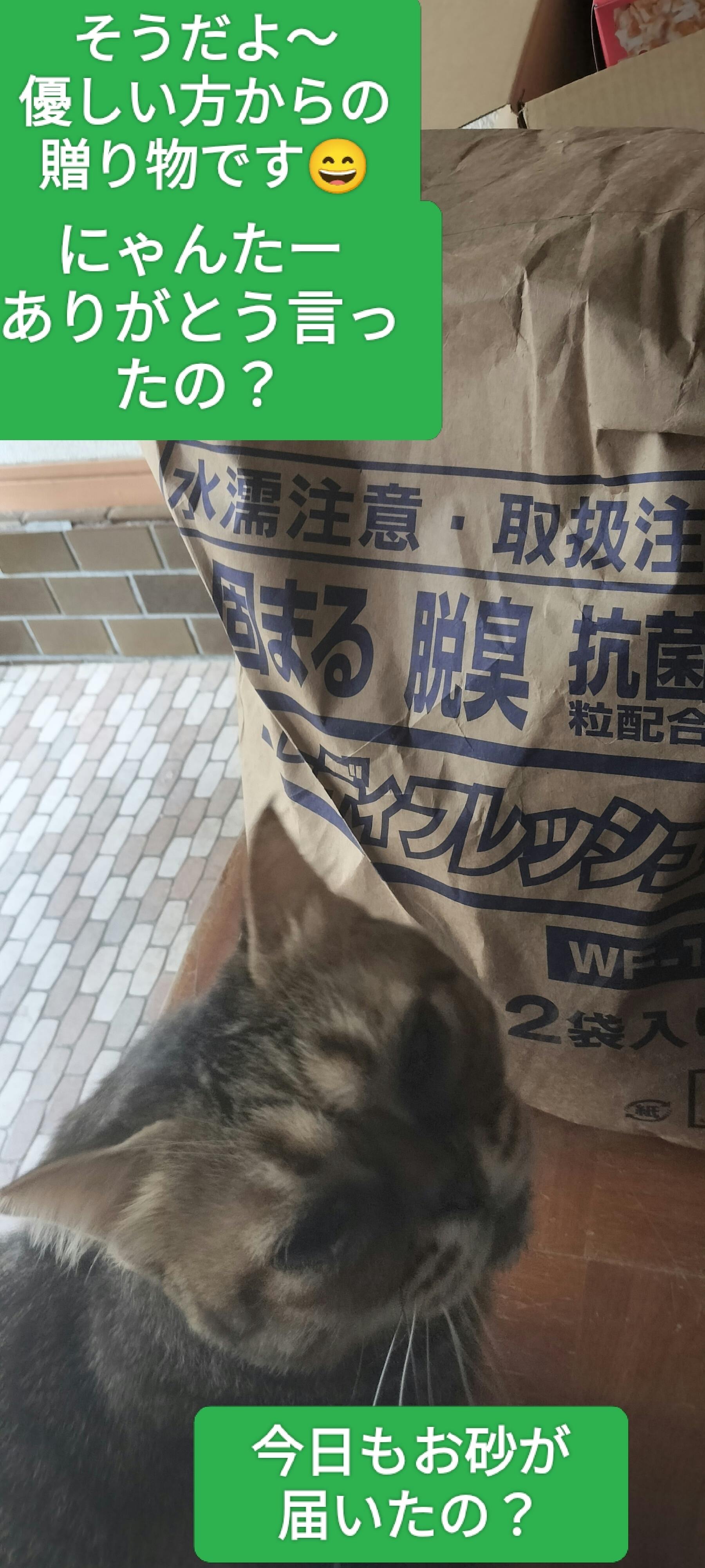今日も猫砂が届きました(◕ᴗ◕✿)猫砂は本当に助かります。