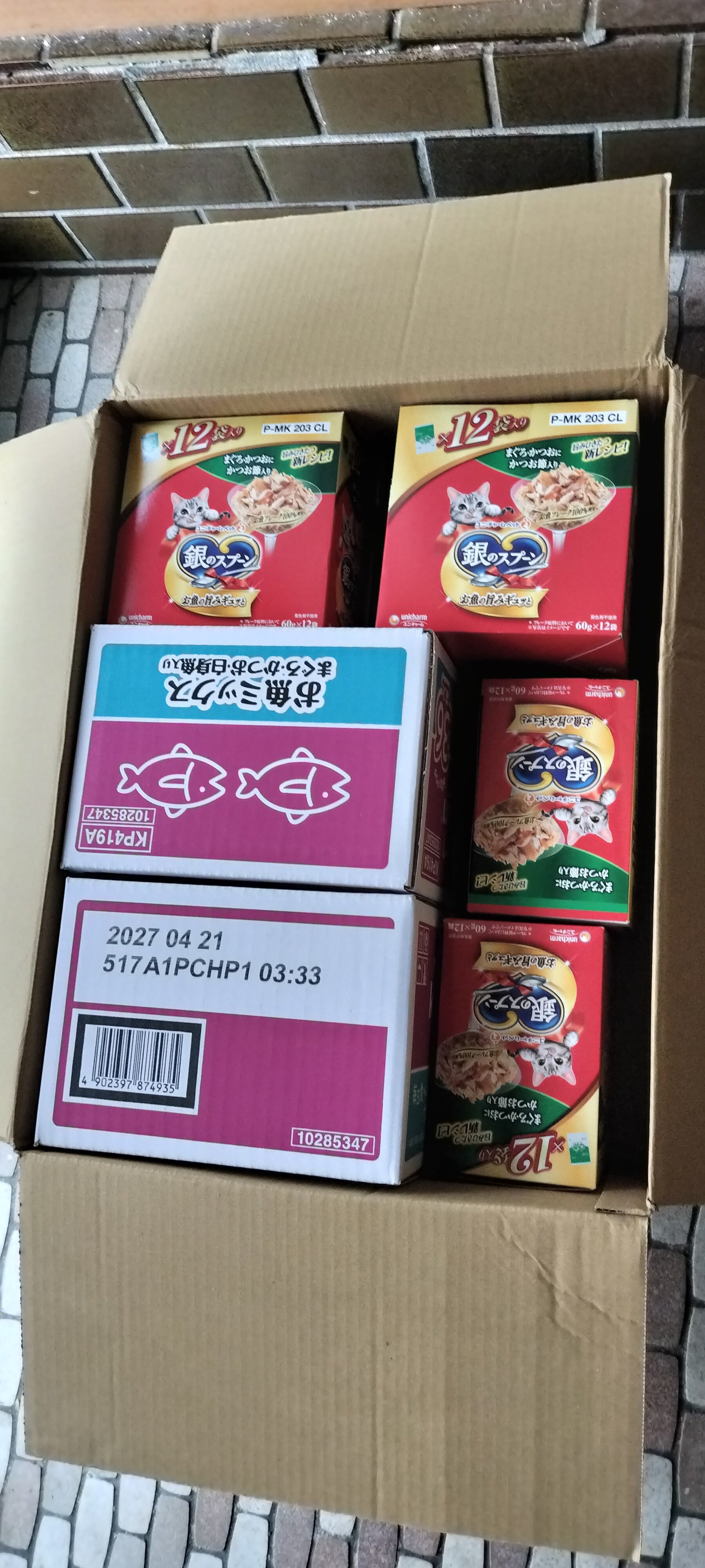 昨日と今日に又支援物資ご届きました。沢山のパウチとチュールが届いてました。昨日は市営住宅の方に届けてきました。