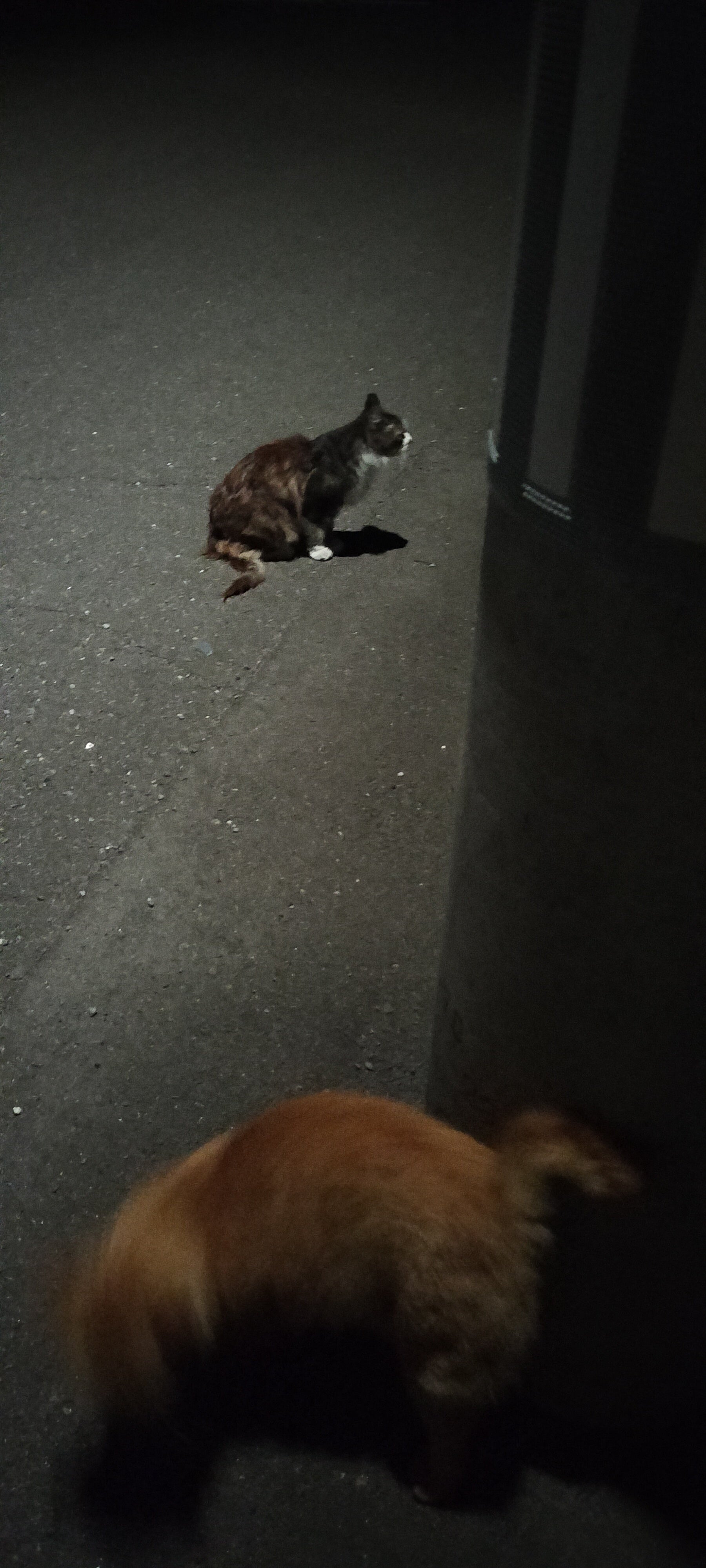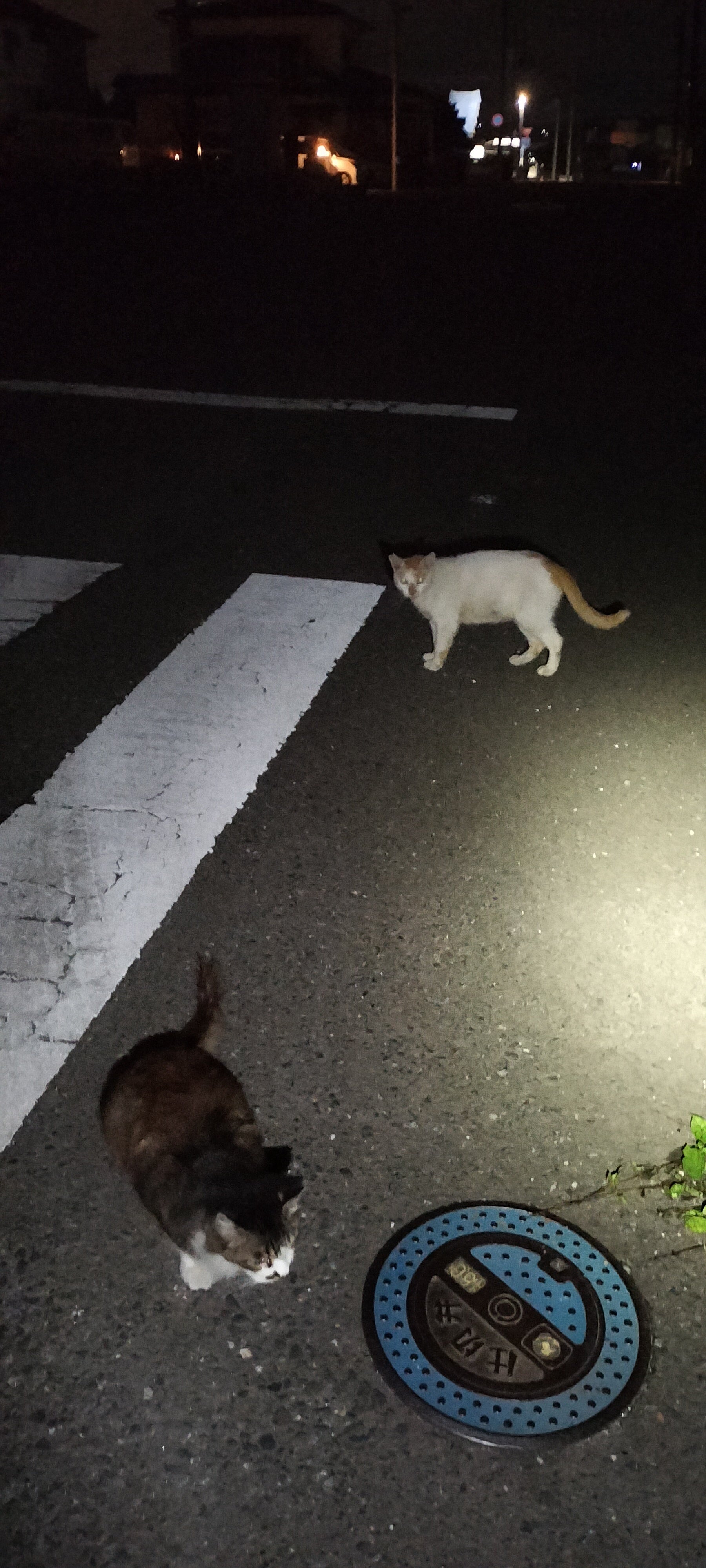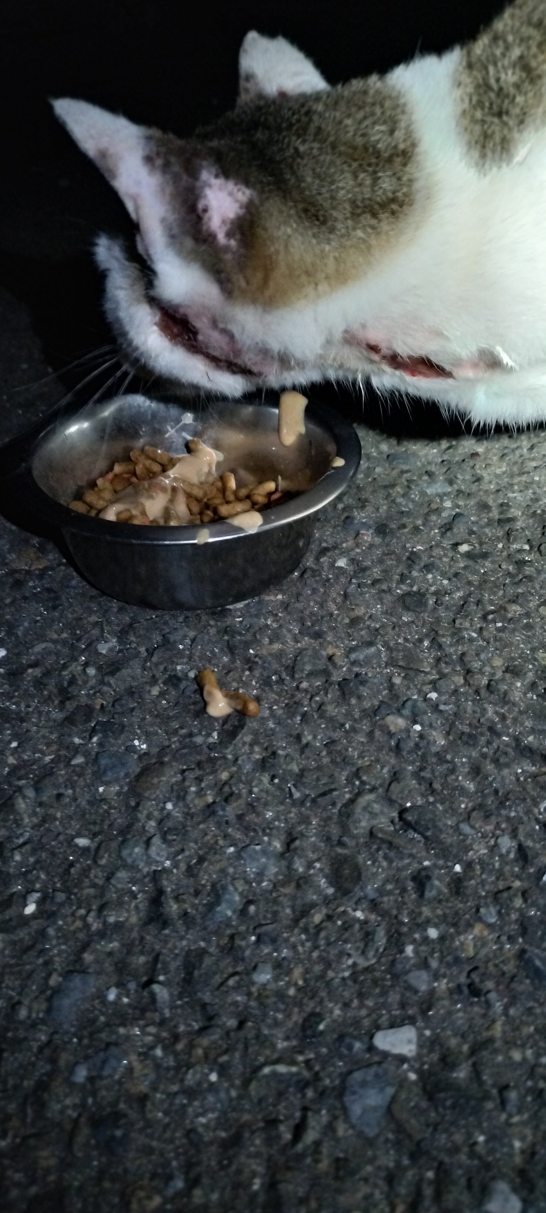 毎晩、この猫達も私を遠くから見ているのです…チョビひげの子がずっと鳴いているのです…なんとひげはあるのですが、女の子でした…