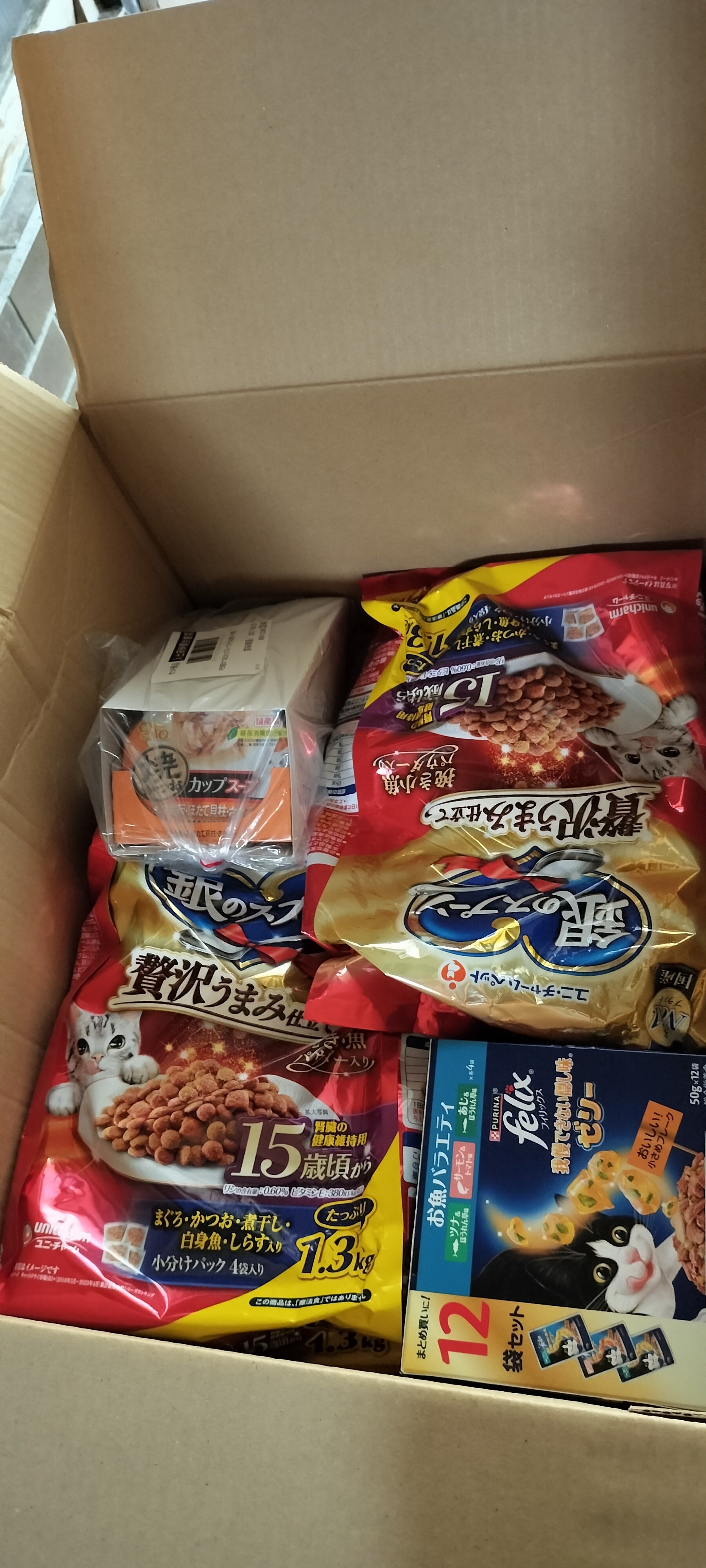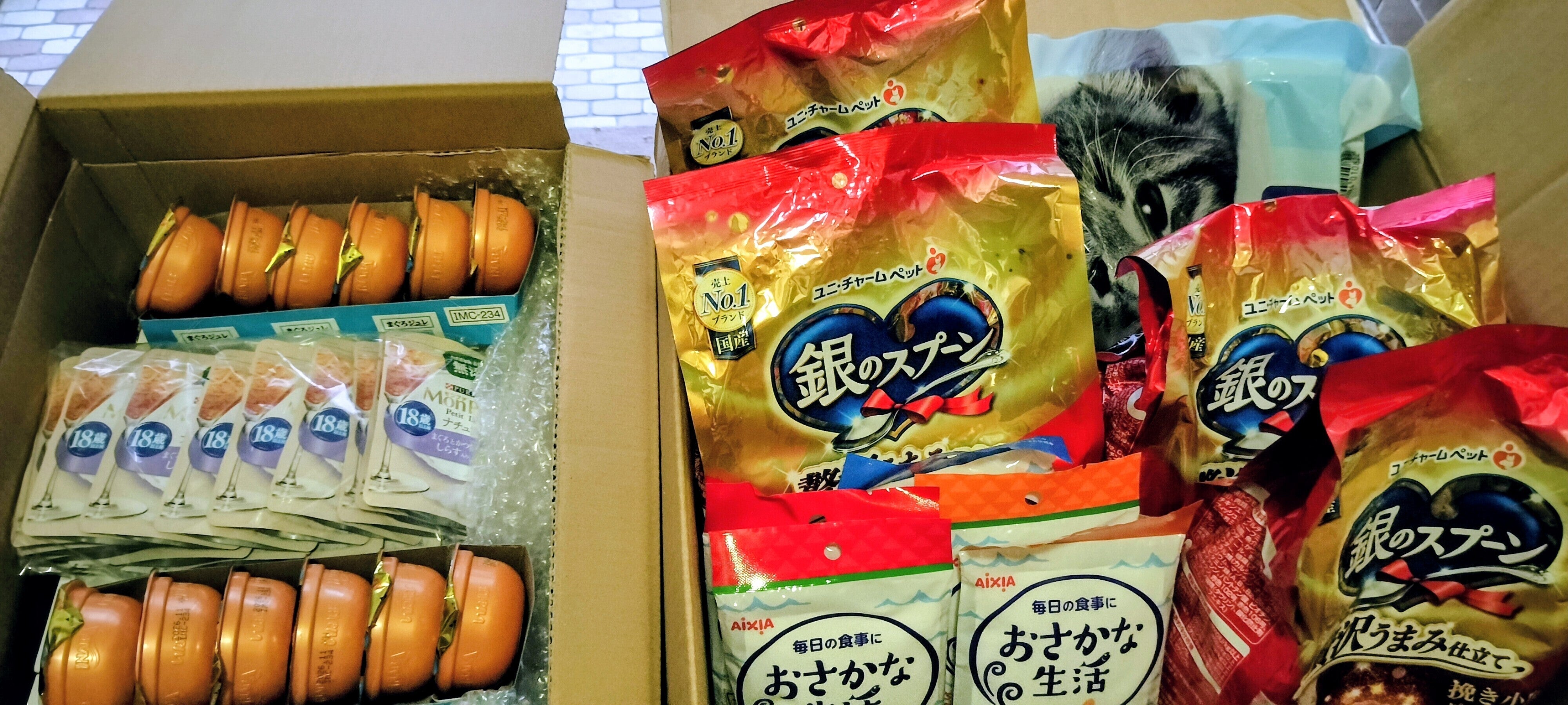 昨日はぐーたん様と森田様からの支援物資も届いてました。ありがとうございます。以前レディーフォーのプロジェクトの時から、大変お世話になってらしゃるスルメ様からも、ご支援を頂いておりました。本当にスルメ様には沢山の猫フードを頂きました。捕獲器もご支援していただいたお陰様で、家の近くの猫達の避妊もする事が、出来ました。とても、一人では出来ないことを支援者様のお力で成し遂げられました。お礼を申し上げます。