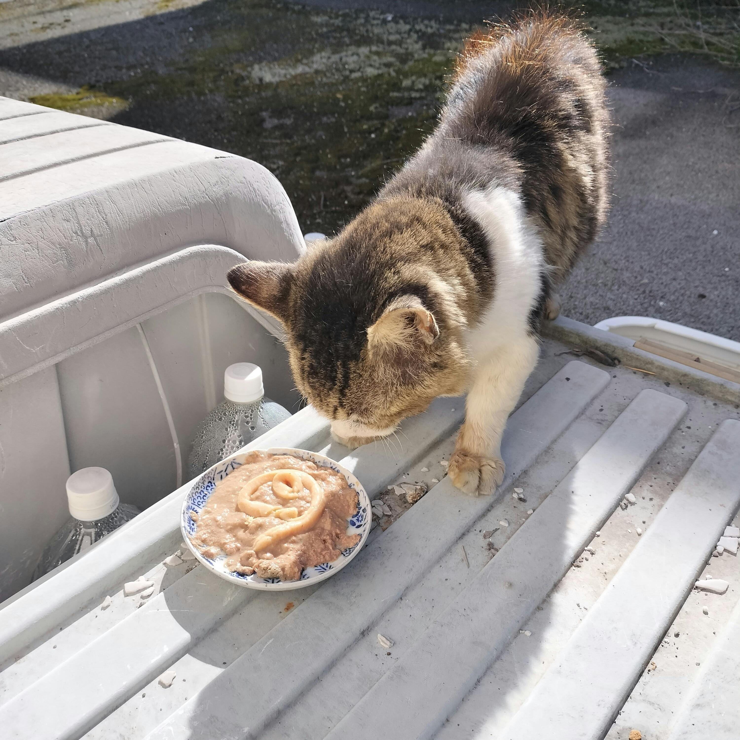 ミケちゃんも食欲旺盛です。 もう、毎晩夜中にひたすらご飯が来るのを待たなくて済みました。 初日は凄く鳴いてました… 7年前に保護した時には4日間鳴きっぱなしでしたが、年も取ったお陰で、静かになりました。抱っこしたら、2キロぐらいしかありませんでした… 写真で見るよりも、子猫に近い体付きでした。15歳になるので、そろそろ保護しないと考えていました。