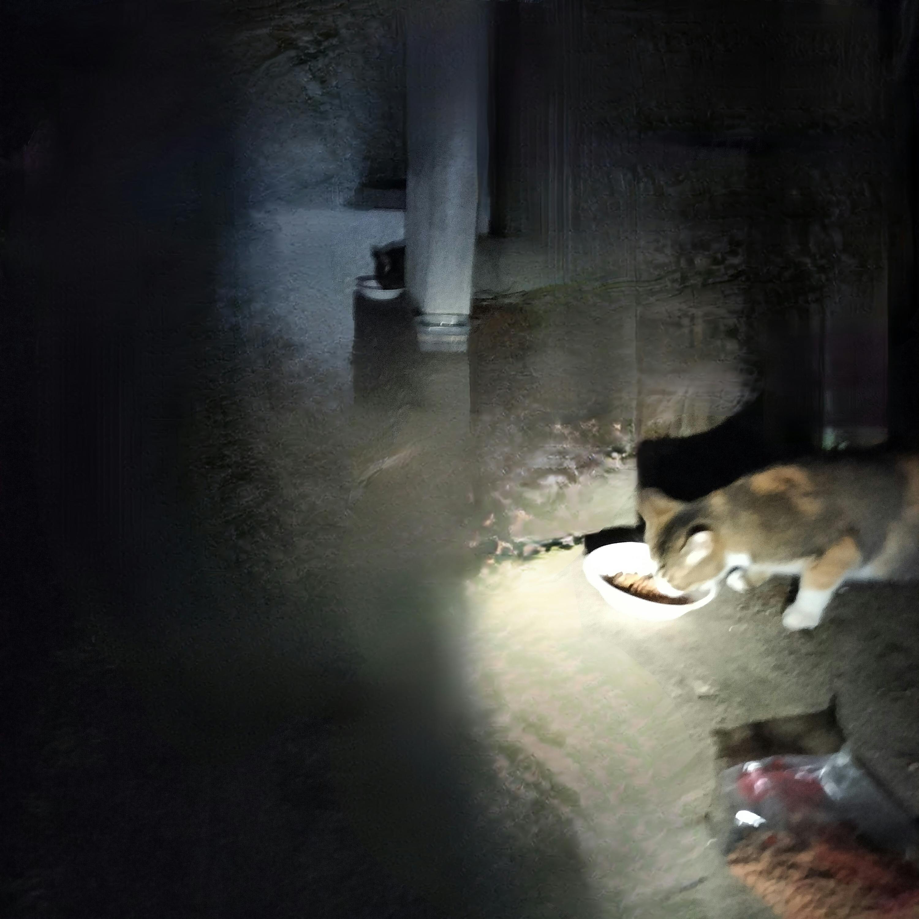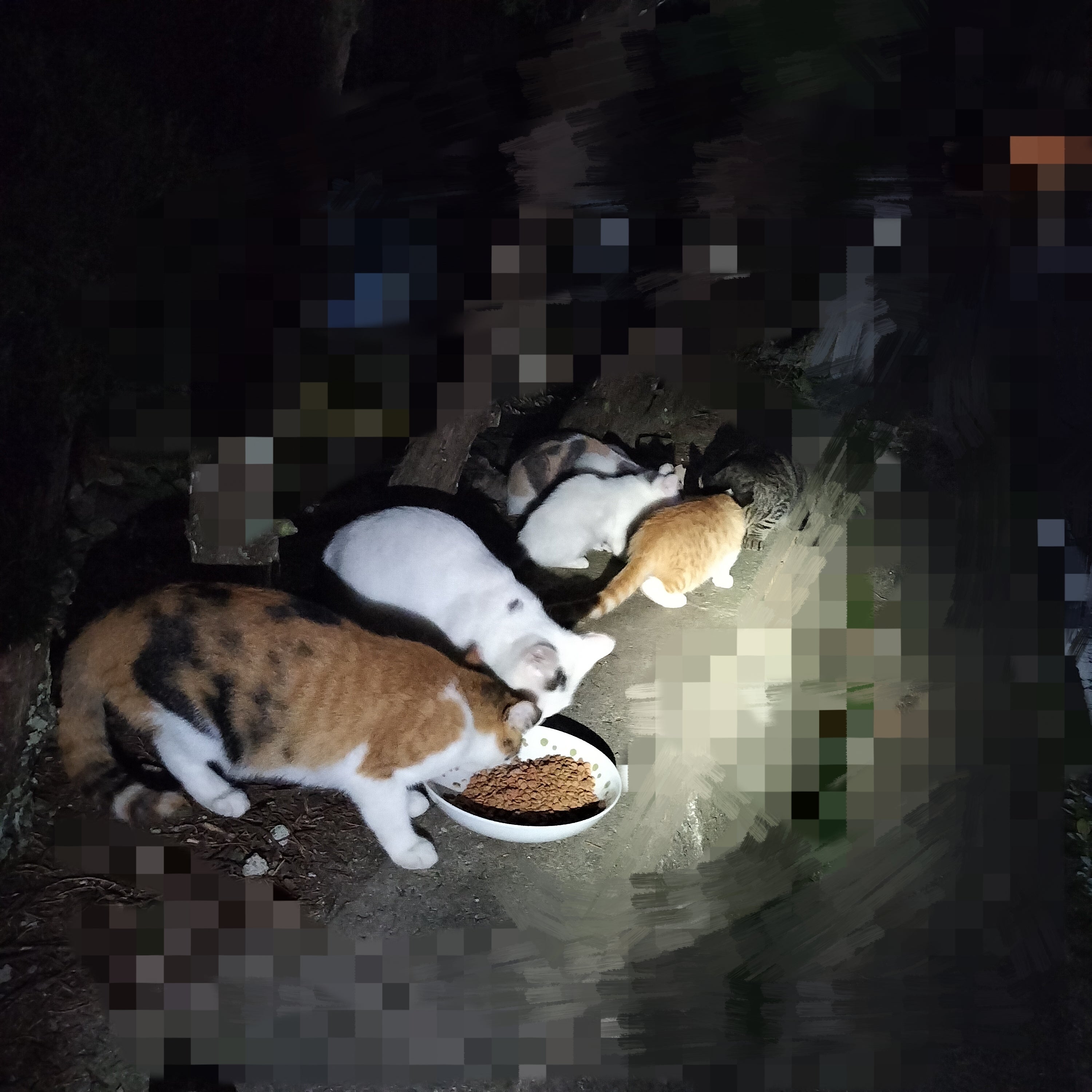 怪我している子猫の母親です。毎晩子猫達と一緒にご飯を待ってくれています。別の家族と合わせて8匹になりました。