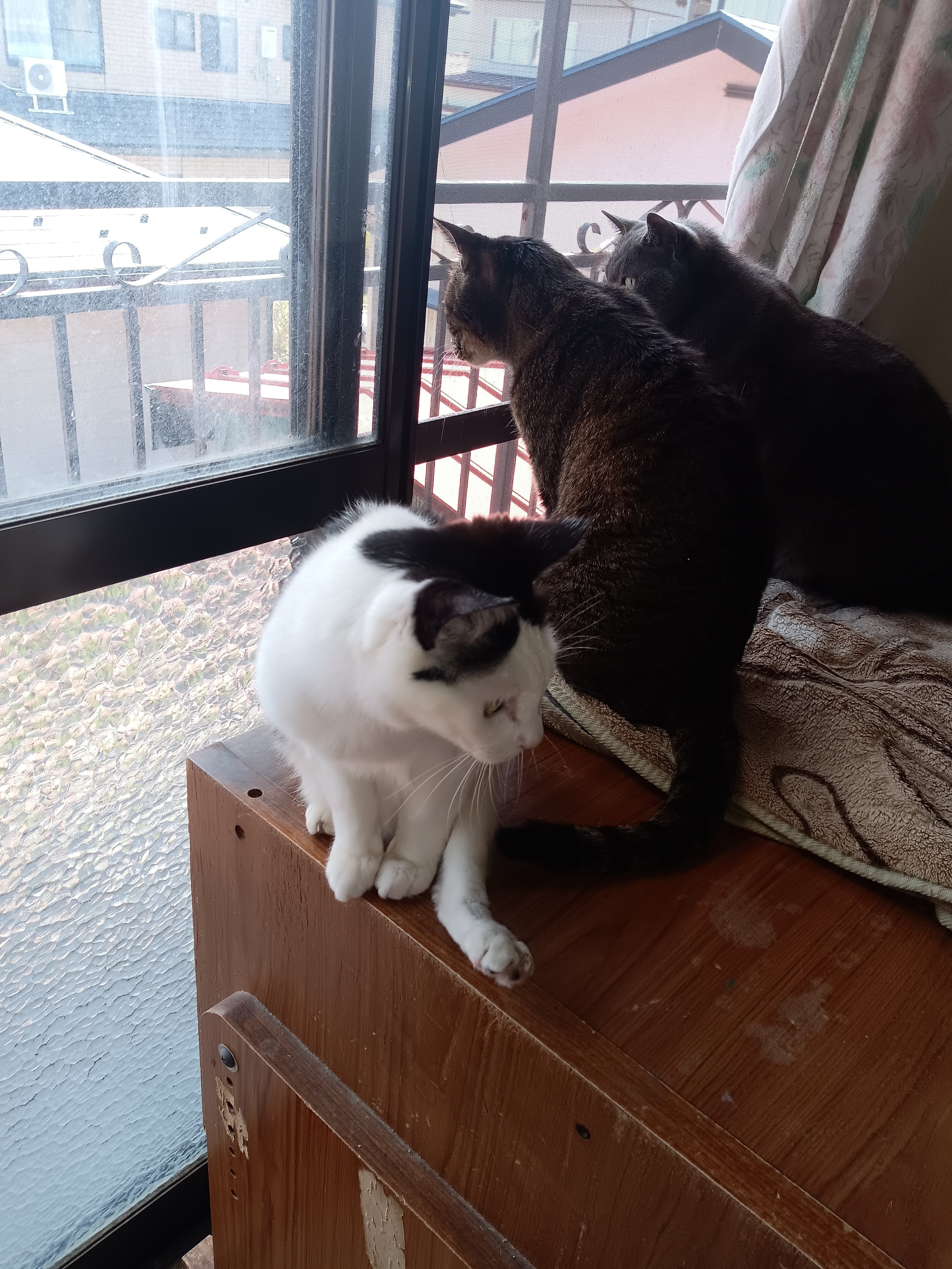 白黒の子が龍之介です。1ヶ月半ぐらいの時に会社の倉庫の中に一人でいました…母猫らしい猫が何処にもいませんでした…足が麻痺していました…多分トラックの荷物の下敷きになったのではないかと推測しています。