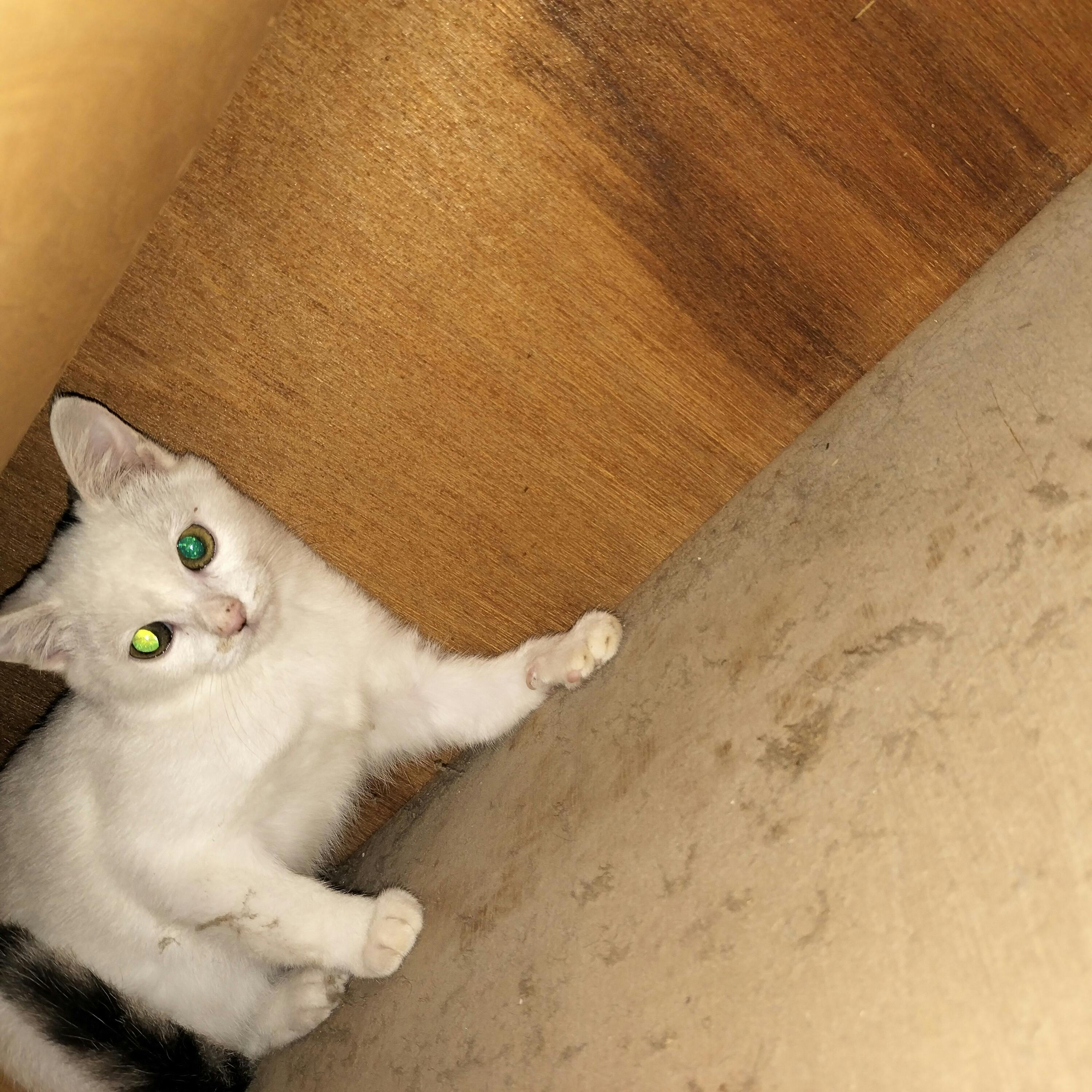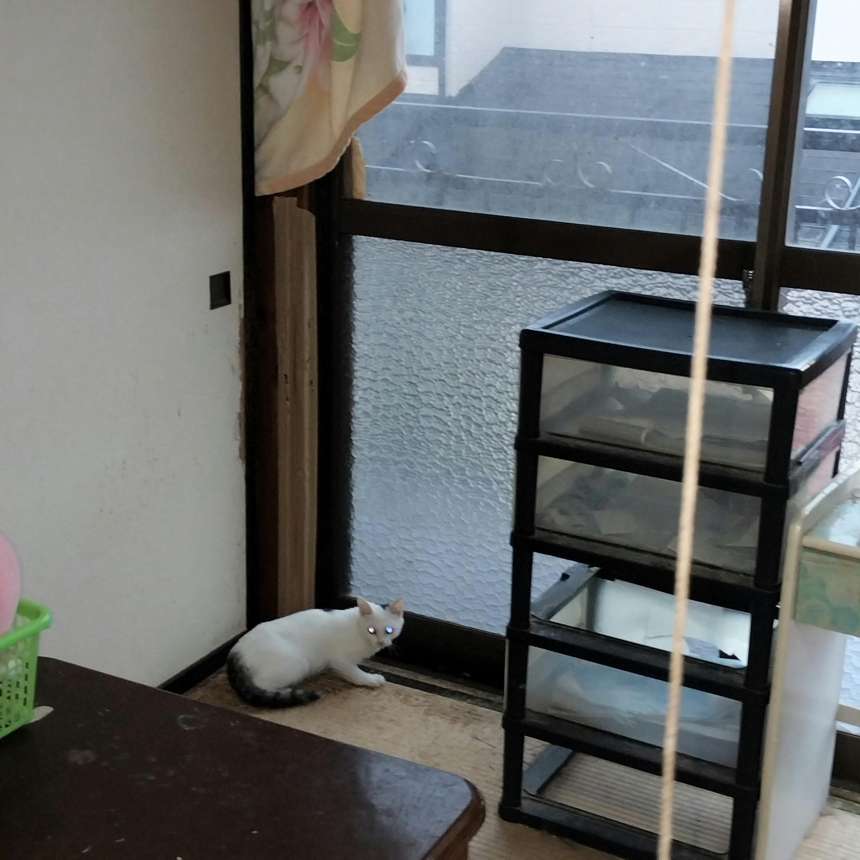 その後家の中の二階に上がったら、目の前を白猫が走り去りました…目の錯覚かと思いました。白猫は家には居ないのです…嬉しくなりました。なんと、タンスの隙間の中へ逃げ込んだのです。