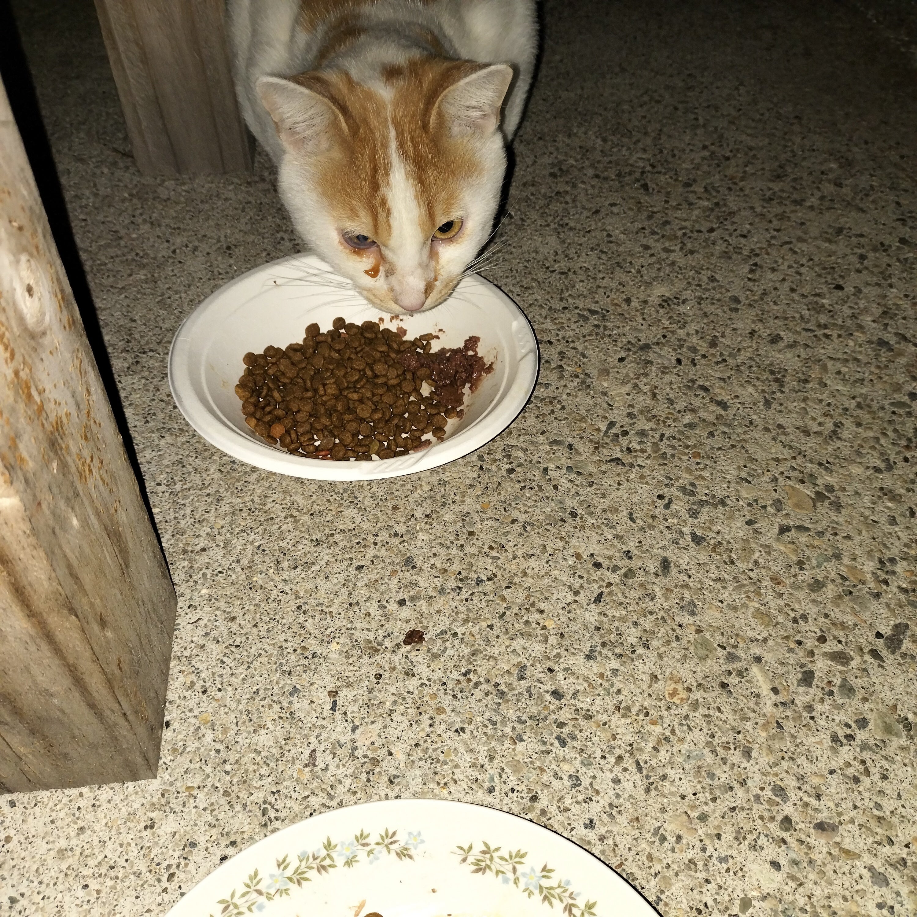 今日も大丈夫なのかなあと心配しながら、餌やりに行きましたら、なんと、遠くから鳴きながら、ジュリーがピョコタン、ピョコタンと前足をあげて出てきました。 昨日よりも元気な感じになりました( ・ั﹏・ั)