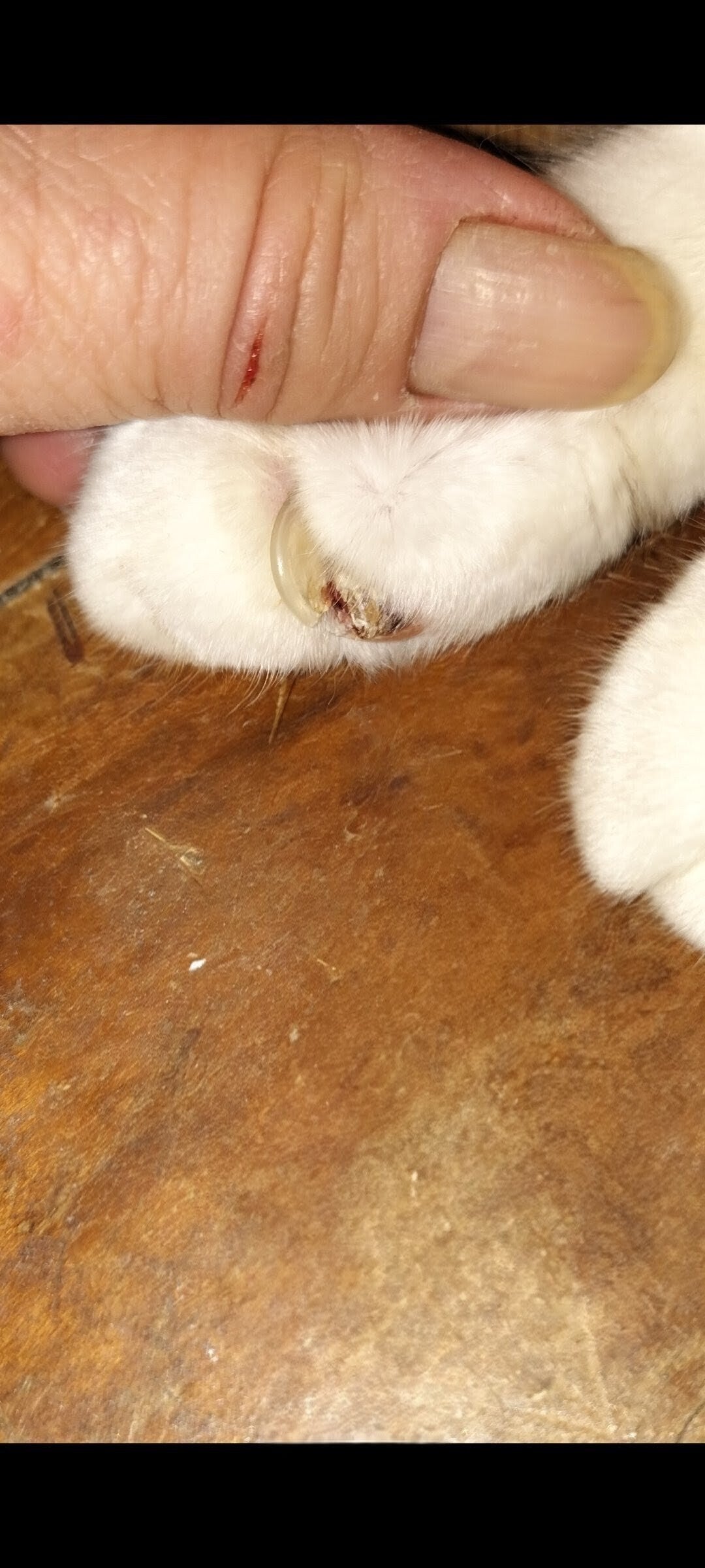昨日気が付きましたが、公園から保護した小ミケちゃんの足の爪が肉球に食い込んでいました… 肉球もさけてしまっていました。 歩き方が遅いなぁと思っていましたが、相当痛かったのだと思いました。 慌てて爪を切りましたが、嫌がって大騒ぎでした…