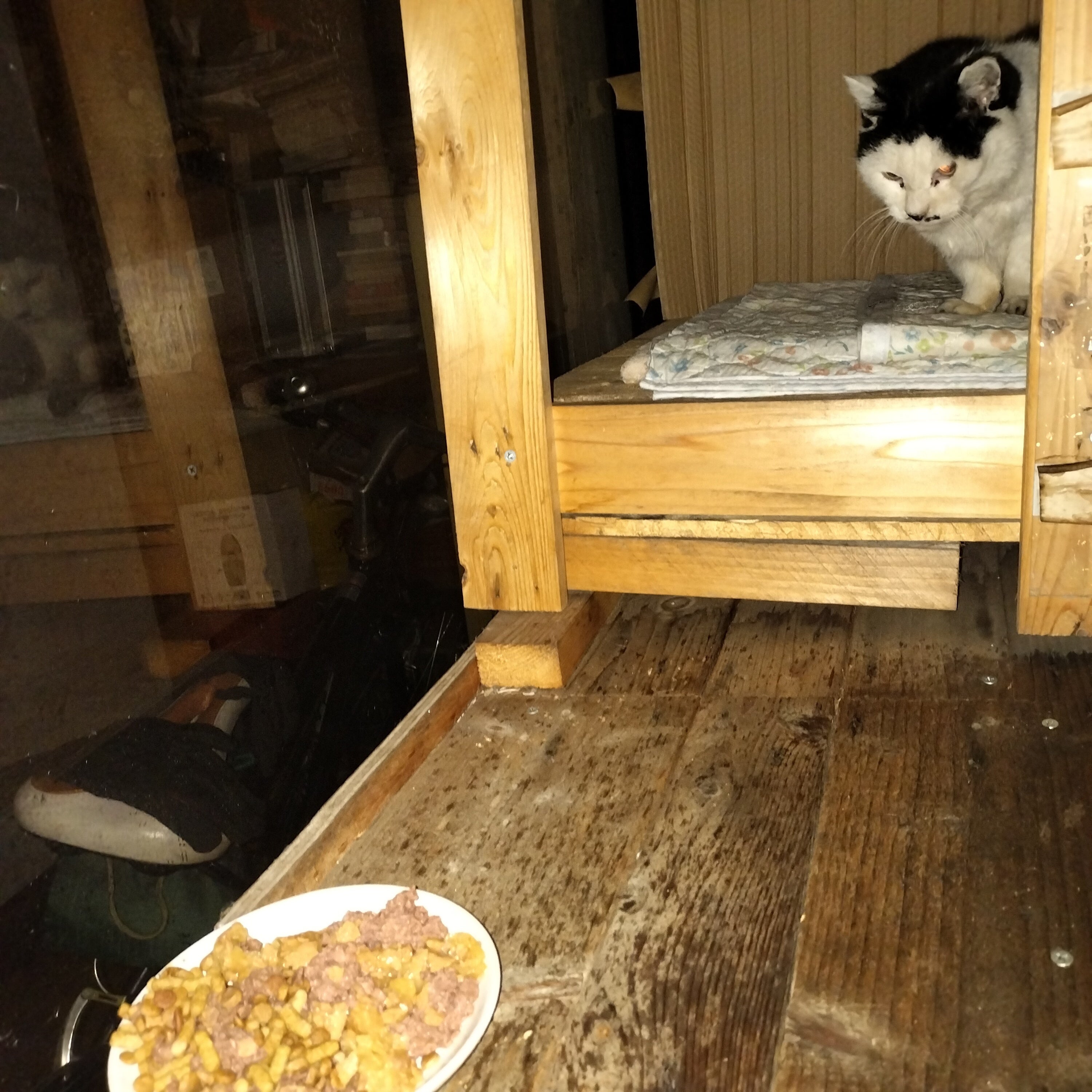 おじいちゃんの所でお世話になっているのもんちゃんおばあちゃん猫も寒くなりましたので、おじいちゃんの小屋に戻って来ました。たまに居ない時がありますが、次の日にはいるので、安心しました…
