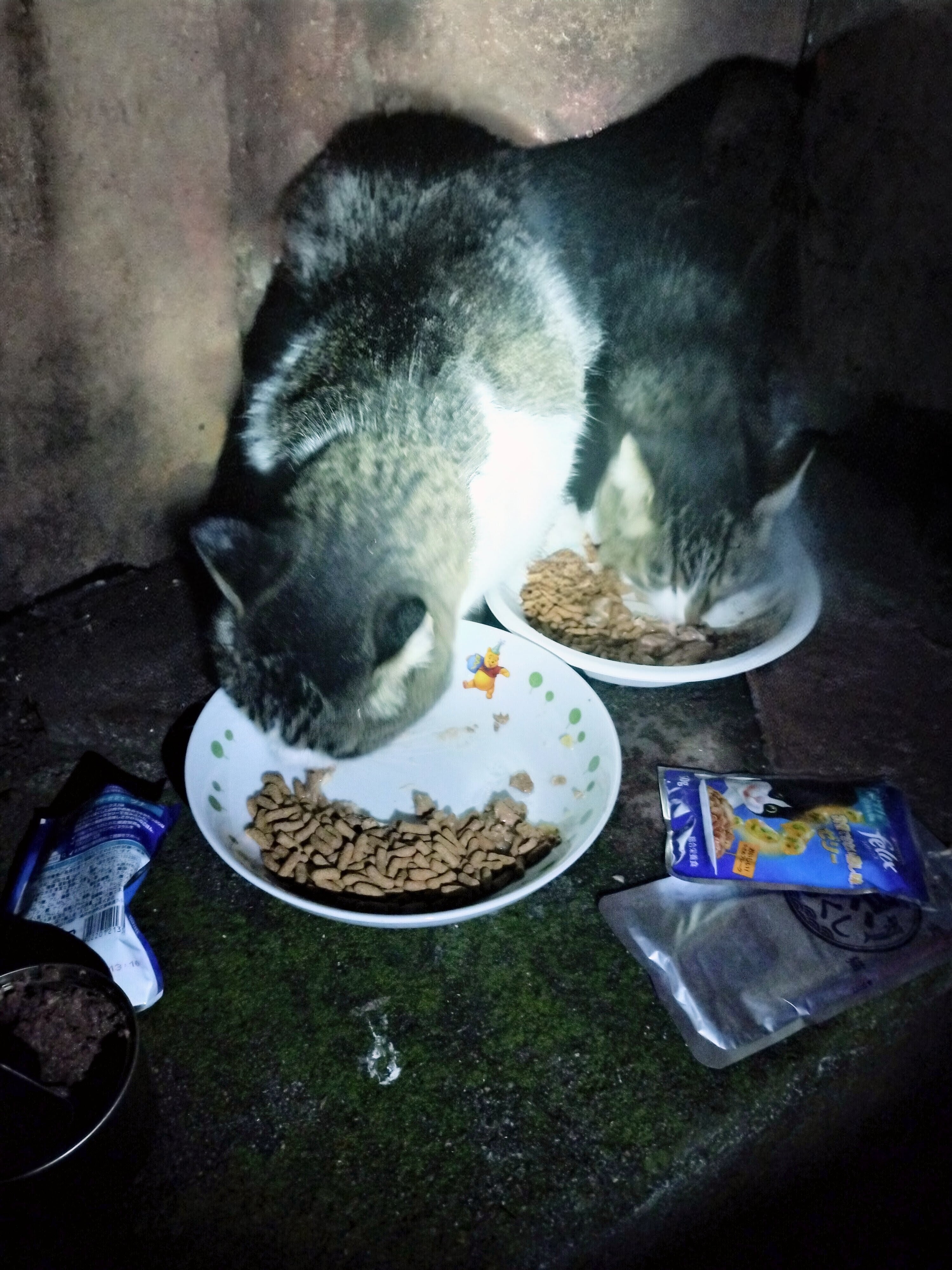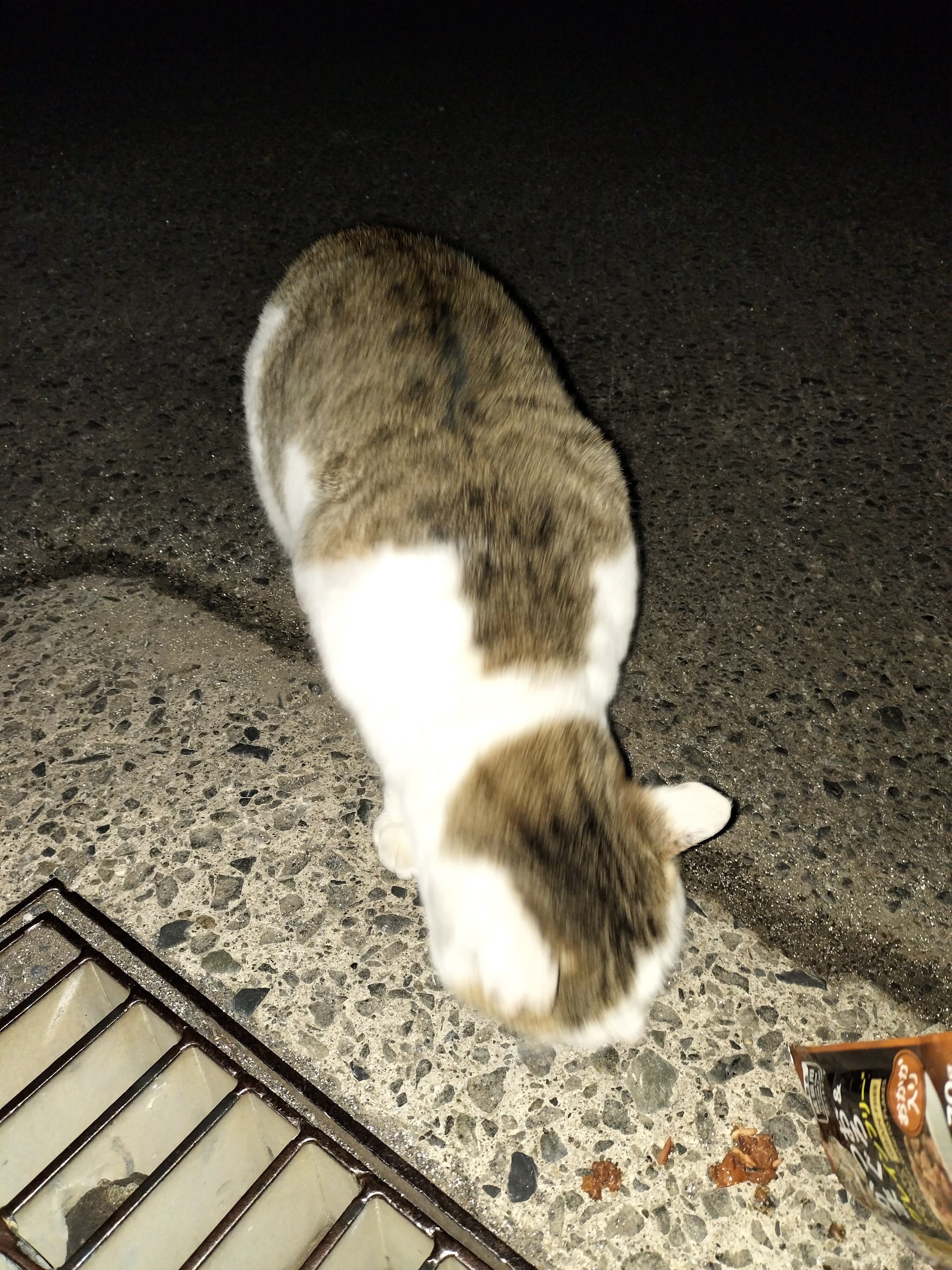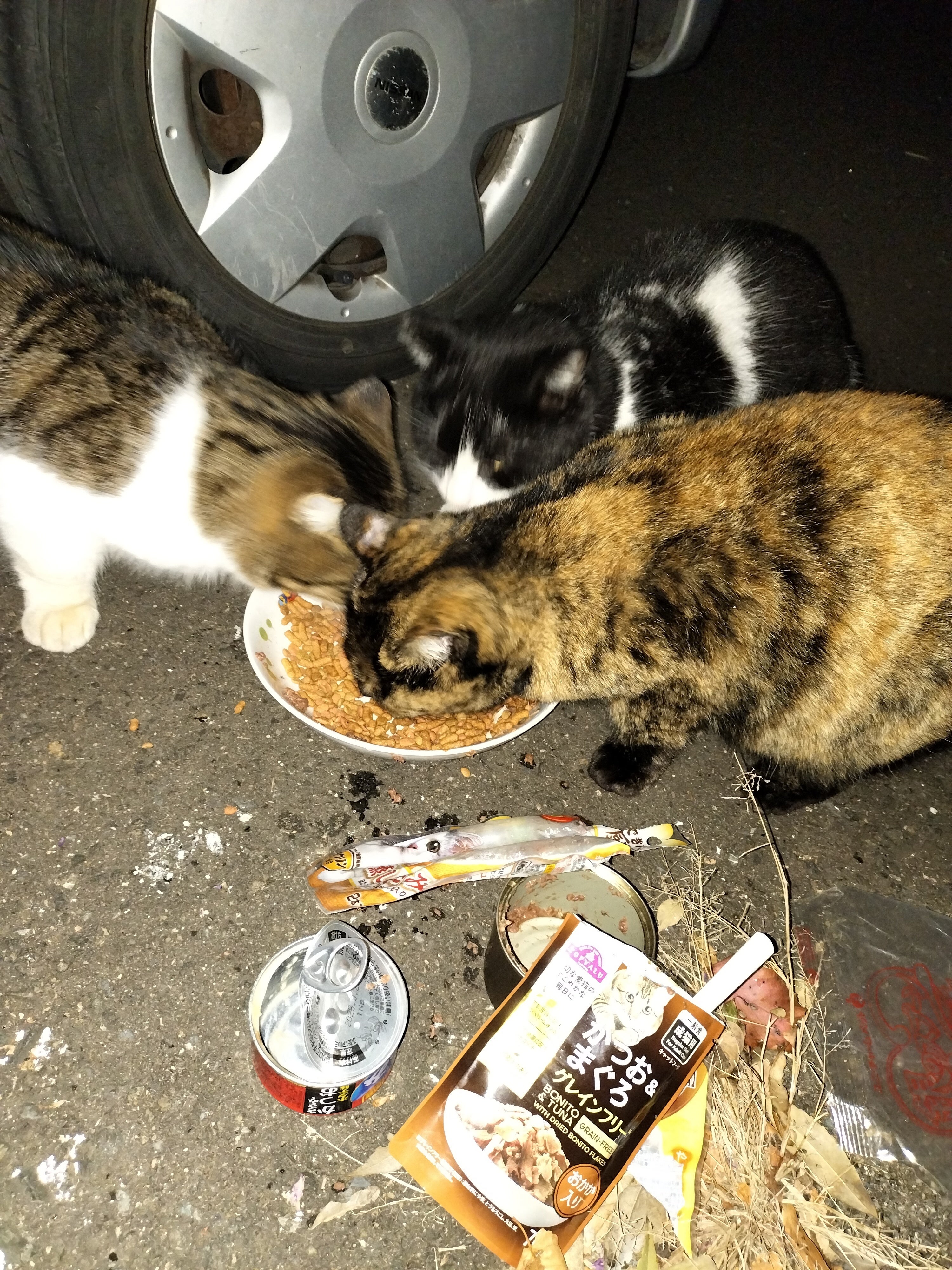 夜中にみき君を探すのも一苦労なのですが、別の猫達はお腹を空かせてちゃんといつもの所に居てくれています。
