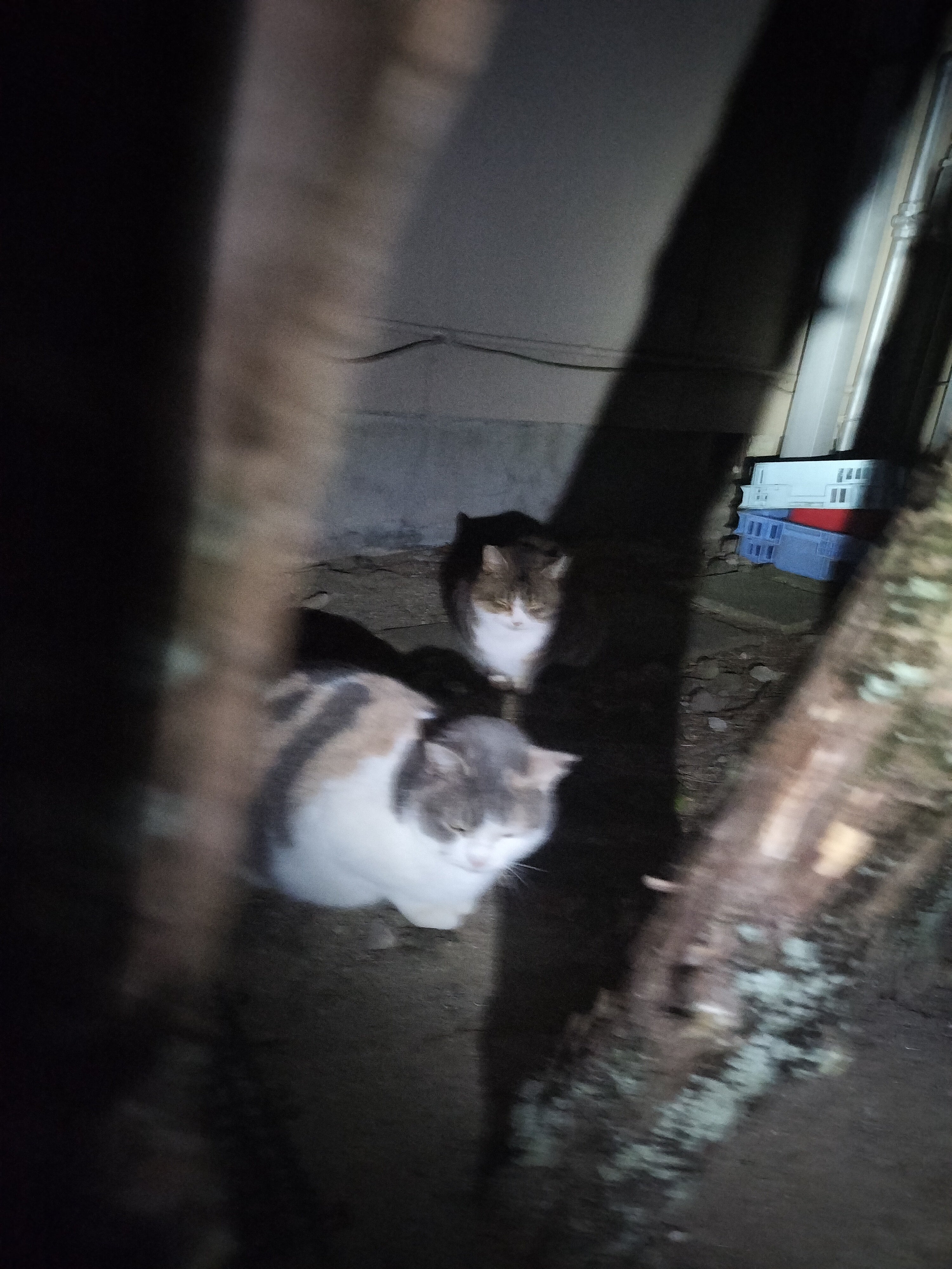 家の近くの猫達は水入れも置けなくなりました、小屋も片付けられました。なので、作った小屋を回収しまして、お向かいの方の猫達が寝ている壁際に毛布とカイロを入れてきています。 六匹分は寝れない狭い所ですが、毎晩凄く冷えるので、本当に可哀想です。母猫は何処かで寝ているようです。 みんなが私を見つめていますが、小屋をなぜ片付けたの?と問いかけられている様です。 なので、ごめんね、もうここには置けないんだよ…と謝るしかありません。
