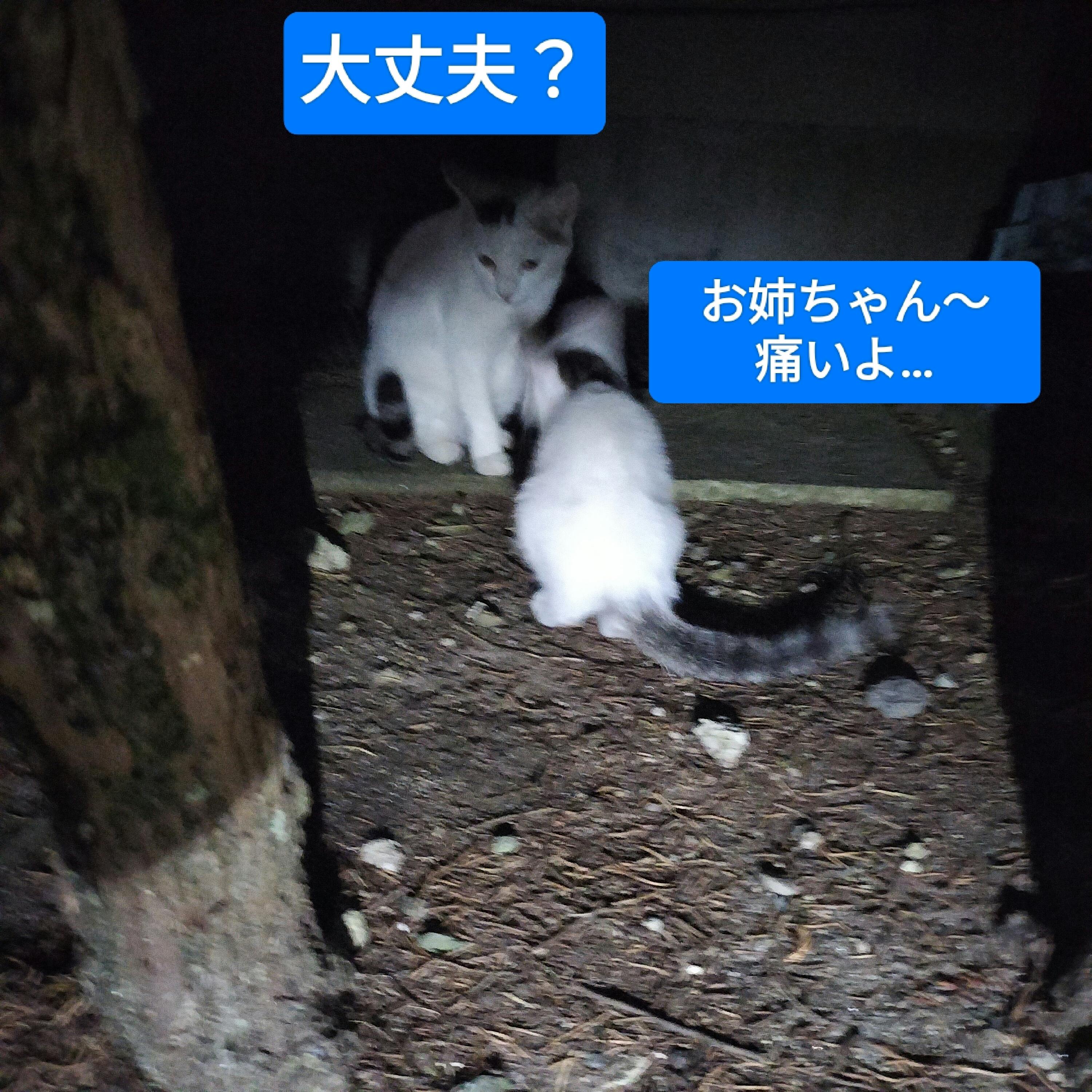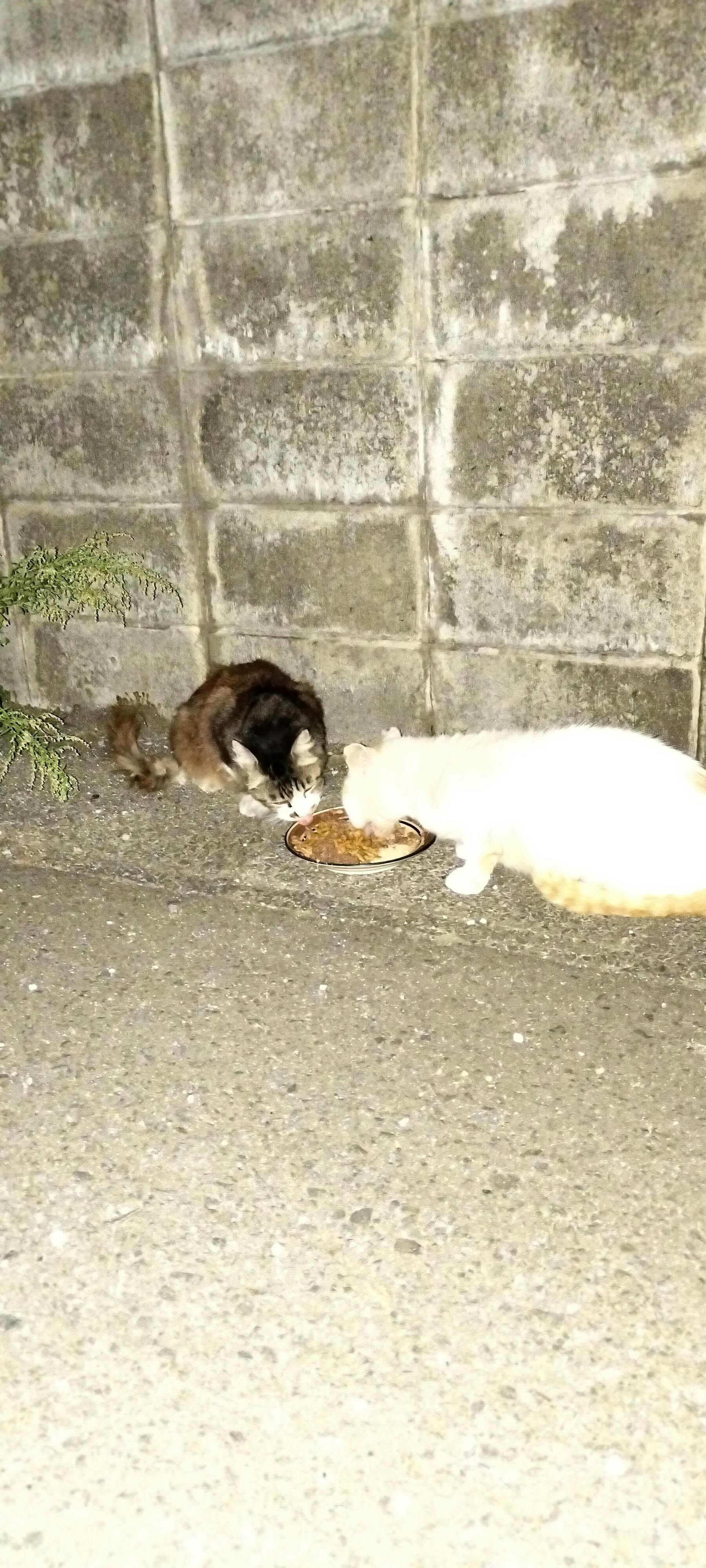 おはようございます、支援者様にはご心配をお掛けしています。 昨日は雨ぶりで仕事が忙しくなりました。朝の4時まで仕事をして来ました。 公園と市営住宅の猫達のえさやりを終えまして、白猫の子猫を捕獲に行きました。もう、朝の5時過ぎてしまいました。空も明るくなりました。子猫はあとから出てきました。大きい捕獲器では、軽いので、失敗する可能性がありますので、洗濯ネットで捕獲してみましたが、子猫だけのご飯を用意して置くと、みんなが寄ってたかって全部食べてしまうのです…子猫を手で捕まえようとしましたら、一目散に逃げて行きました…奥の方へと逃げて行きました(٥↼_↼) もともと一番気が小さい子なのです。 初めて見かけた時も、ずっと遠くからこっち側に来ませんでした…多分女の子だと思います。 あまり、何回も捕まえると、今度は、本当に近くに来なくなると思いましたので、しつこくするのをやめました。家にプレドニンゾロが一錠だけのこっていましたので、子猫なので、半分だけをチュールに混ぜてあげました。ところが、それをみんなが奪いに来るのです… 追い払うのに大変でした… ちゃんと食べたかどうかも不安でしたが、少しでも痛みが和らぐと良いのですが… 今日又動物病院からお薬を買ってきたいと思います。 本当に気をもむばかりです。支援者様にはご心配をお掛けしています。 ありがとうございます。明日仕事が暇なので、今晩又、捕獲してみたいと思います。 話が変わりますが、おじいちゃんのところにいるハチワレのオス猫がやっぱり居なくなりました…先週の日曜日から姿が見えていません。 私も先週は車が車検通れなかったので、夜の8時頃に公園に行きました。 日曜日はいつも車が停まっていないのですが、なぜだか、最近たまに見かける赤帽みたいなホロー付きの軽自動車が公園の入口に停まっていました…その前見た時には白髪のおじいちゃんだったのですが、7年間見たこともありませんでした…猫取りする奴らは捕獲器か入る車で来るとにらんでいるのです。 ナンバーが営業ナンバーなのですが、日曜日に公園に何しに来ているのか、怪しくなりました。その後ろに止まりました。一昨年から、猫が一匹、2匹と次々と居なくなりました。人馴れしていない子達なのです… 猫取りが来ているのではないかとは思っていました。そうしましたら、猫の鳴き声が一回だけ聞こえたのです、周りを見ても居ないので、気のせいかと思っていました。 そしましたら、車からオヤジが降りて来ました。箱の中に入って行きました。 全然出て来ませんでした。 その時に写真を取りました。 しばらくしてからオヤジが出てきました。私はライトを照らして顔を見たのです。ちらっとこっち側を少しだけ見ては運転席に戻っていたのです。背の低い白髪の角刈りのオヤジでした。人馴れしていない猫達が居なくなるのは捕獲器を使わないと捕まえられないのです… もしかしたら、その日にハチワレ君がもう捕まっていたのではないかと、毎日ずっと考えています… なぜにオヤジは箱の中から全然出てこなかったのか、猫の声を聞いたのは、気のせいではなく、箱の中からだったのではないかと… 私の行動をたまに来ては偵察していたので、私が餌やりにこない時間帯を狙っているのだと強く確信しました… あの時オヤジに声を掛ければ良かったのにと凄く後悔をしています…ハチワレ君も助かって居たのかもしれないのに…いつか猫取りのクソを見つけ出してやりたかったのです… 7年前にも裏の入口で、あるオヤジが市役所の服を来て、捕獲器を何台も置いて、中には猫達が入っていたのを散歩しているおじさんが見たそうです…何しているの?と聞いたら、市役所の者ですと、野良猫が増えたからね、捕まえに来たんだと答えたそうです… 散歩しているおじさんも、確かに野良猫がいっぱいいるもんね〜と返事をしたそうです。そしたら、中のハチワレの長毛の猫が凄く暴れていました…オヤジはしょうがない、この猫を離してやろうかと、捕獲器から出したそうです… ほら、その猫だよと私が餌をやっていた母猫を散歩のおじさんが指しました。 その時期に母猫は子猫を産んでいた時期でした… 猫達を捕まえたオヤジ母猫だと分かったのです。わざと離して、又野良猫を増やしては捕まえるつもりだったと思います… おそらく散歩している方は本当の話をしているのだと思います。 でも、市役所の人は絶対に野良猫を捕まえに来ませんと答えました。猫達を売り飛ばす猫取りのクソですよと言いました。その後市役所に電話をしましたら、野良猫の捕獲はしていませんとの返答でした…猫取りのオヤジは自分の生活の為にかけがえのない子達を次々と捕まえて行きますが、何の罪の意識も感情も持たない悪魔の様な輩だと思います。 7年前からの恨みが一生消える事はありません… 今度又その赤帽みたいな軽自動車を見たら、声を掛けたいと思います。今は