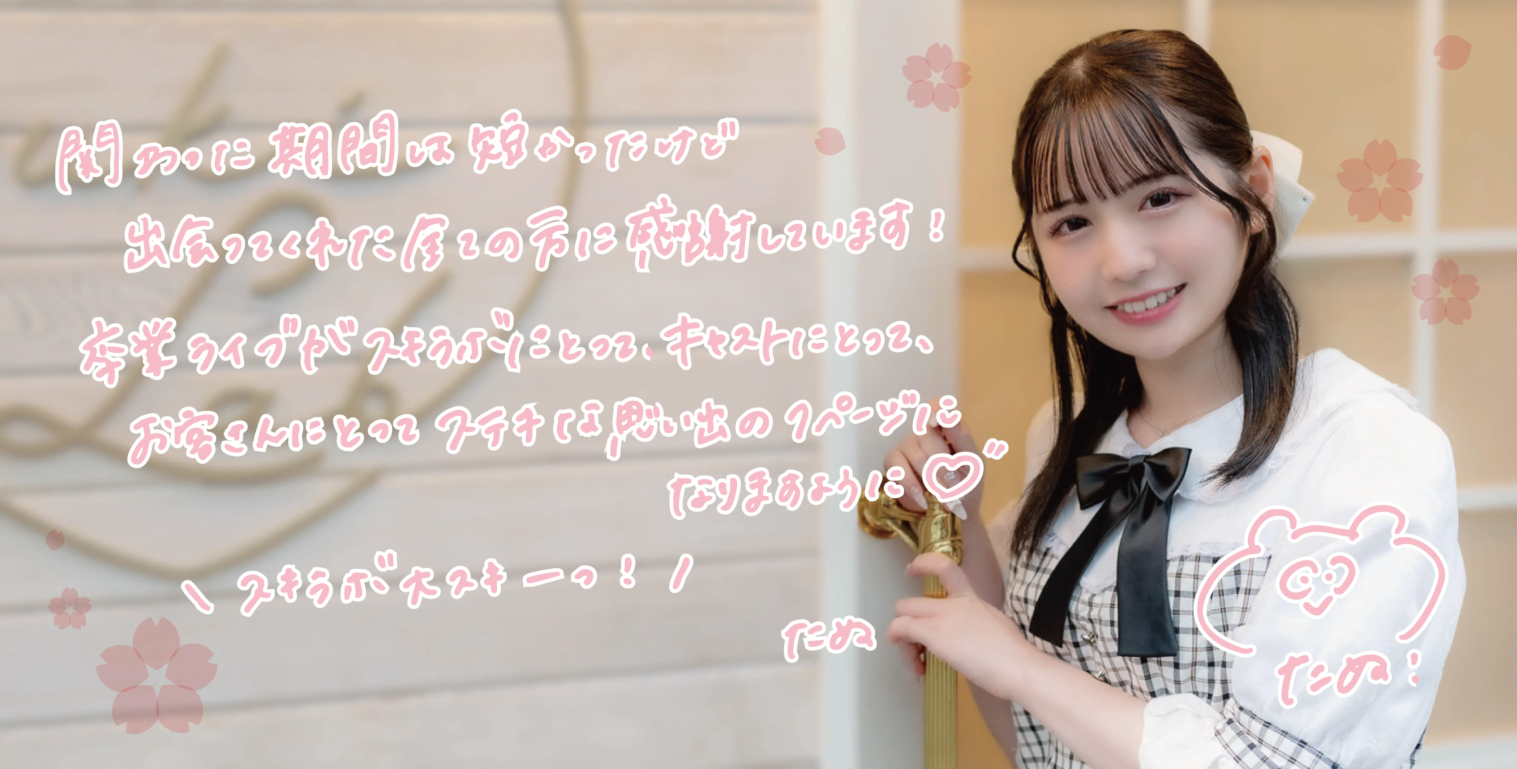 スキラボ卒業ライブまであと一ヶ月を切りました。皆さまの応援や期待に応えられるよう、スキラボ運営キャスト一同より一層頑張って準備をしていきたいと思います!