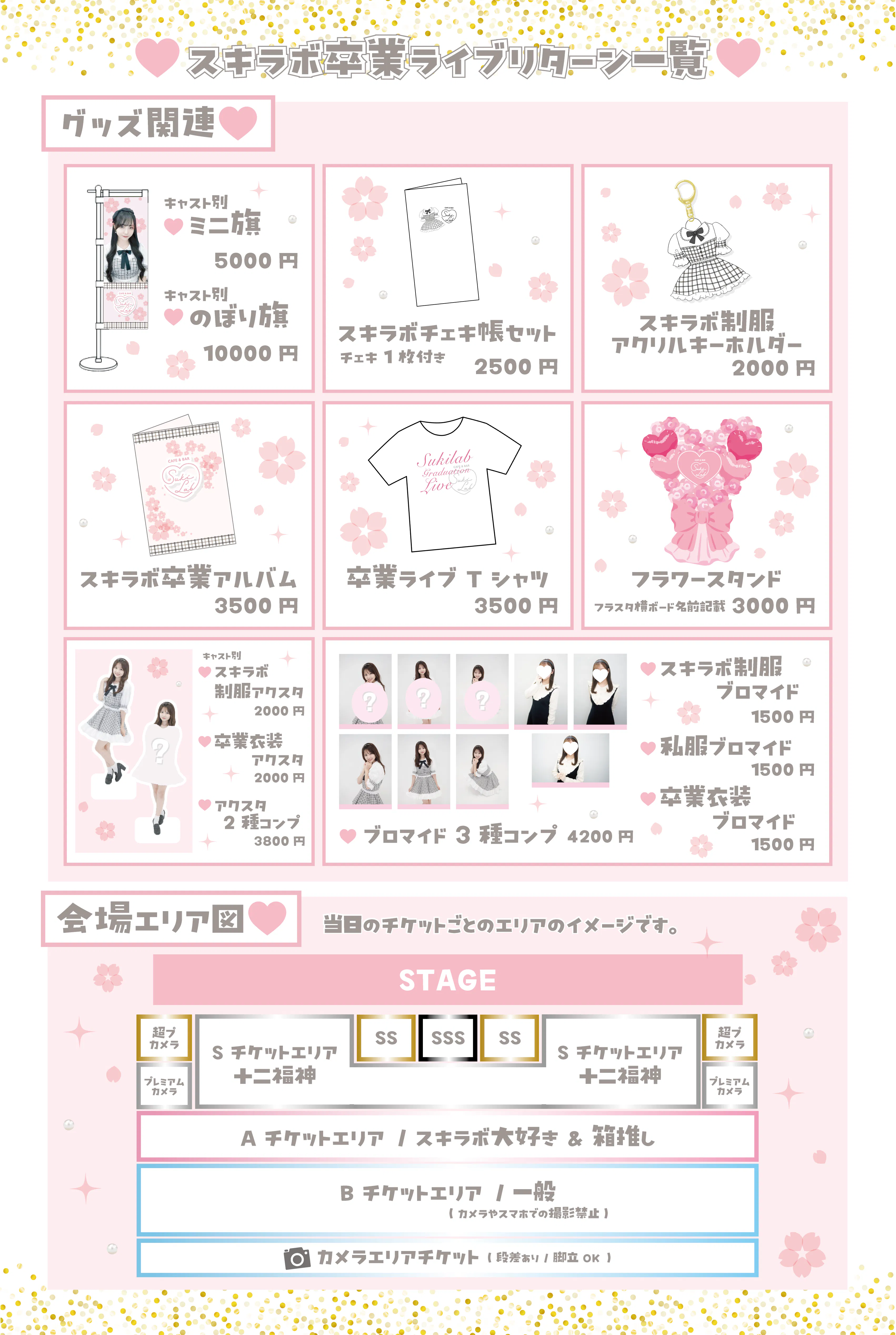 ・「超プレミアムカメラエリア30万円コース」「プレミカムカメラ10万円コース」「関係者専用チケット(※キャストによる申請が必要)」を追加しました!(それに伴いエリア図も更新しております。)