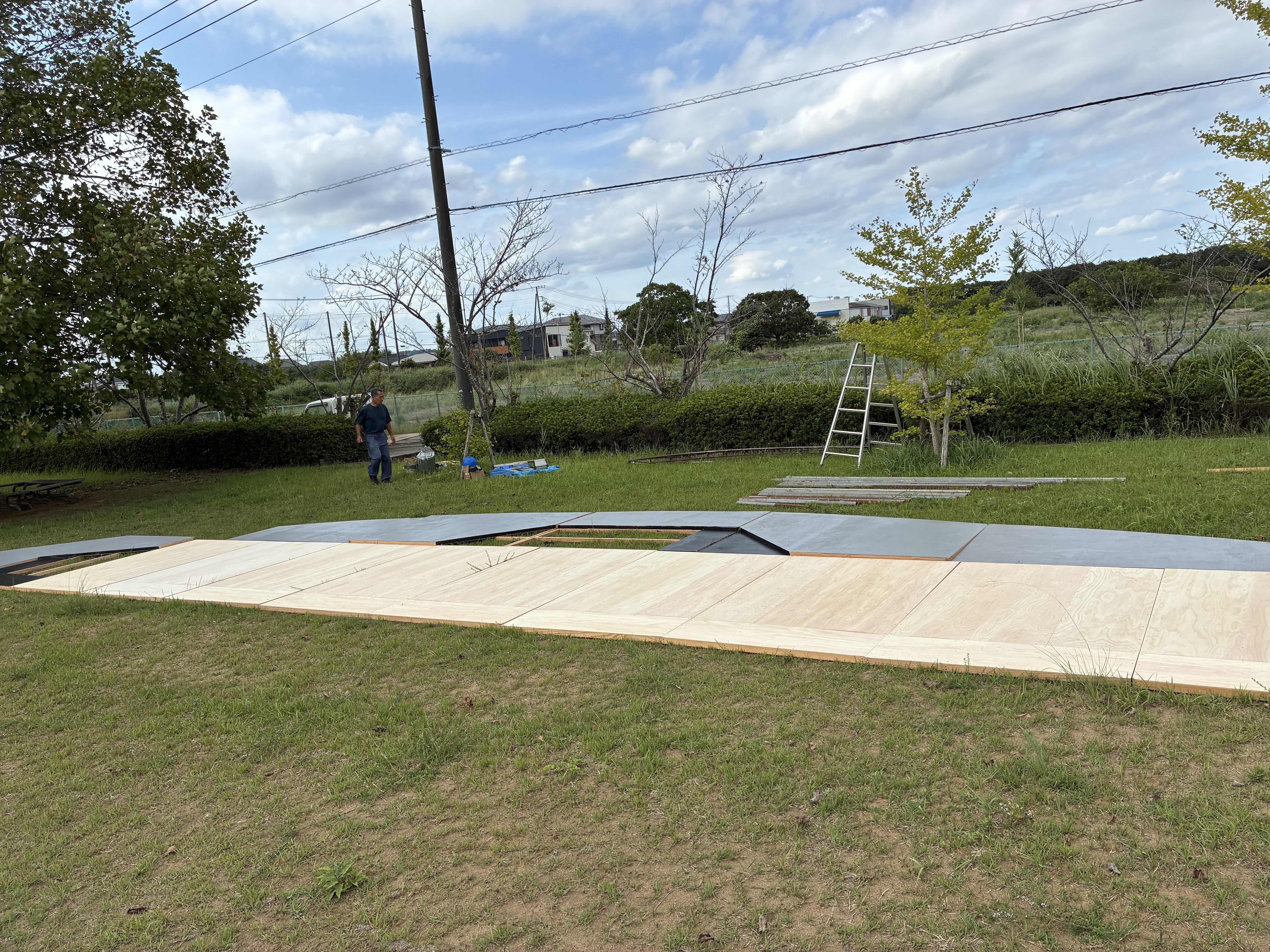 2025/10/01 14:42家で組み立てた部材をトラックへ9月28日(日)より、旭緑地公園(香取海軍航空基地跡)にて、山内若菜の12メートル絵画を展示するための、掩体壕型18メートルパネルを制作してます。若菊親方衆(withモンゴルマン)が、できるだけお金がかからないように(廃材利用や借用するなど)資材を調達し、完成後に受ける風力を想定して充分、根入れをしました。とても大変な作業ですが、安全に配慮して頑張ります!トラックいっぱいの資材 もっと見る